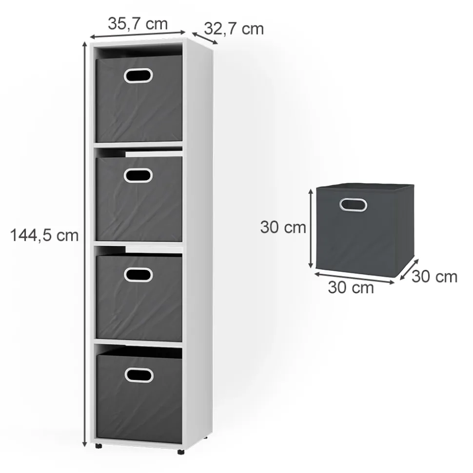 - MAßE: Offener Raumtrenner mit 2 Faltboxen: 144,5 x 35,7 x 32,7 cm (BxHxT) und die Faltboxen: 30 x 30 x 30 cm (BxHxT).