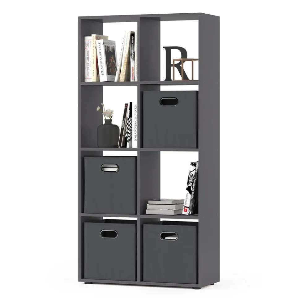 - Das stehende Bücherregal bietet 8 offene Regale und Ablagen für 30×30 Kartons und kann auch als Raumteiler verwendet werden.