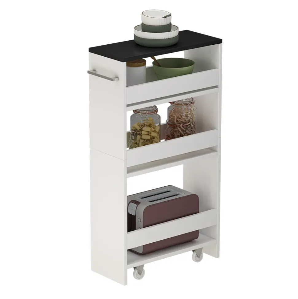 - Mobile Küchenablage mit modernem Design, 3 offenen Fächern und viel Stauraum. Als Lückenregal platzsparend, leicht rollbar und flexibel für Küche oder Bad einsetzbar.
