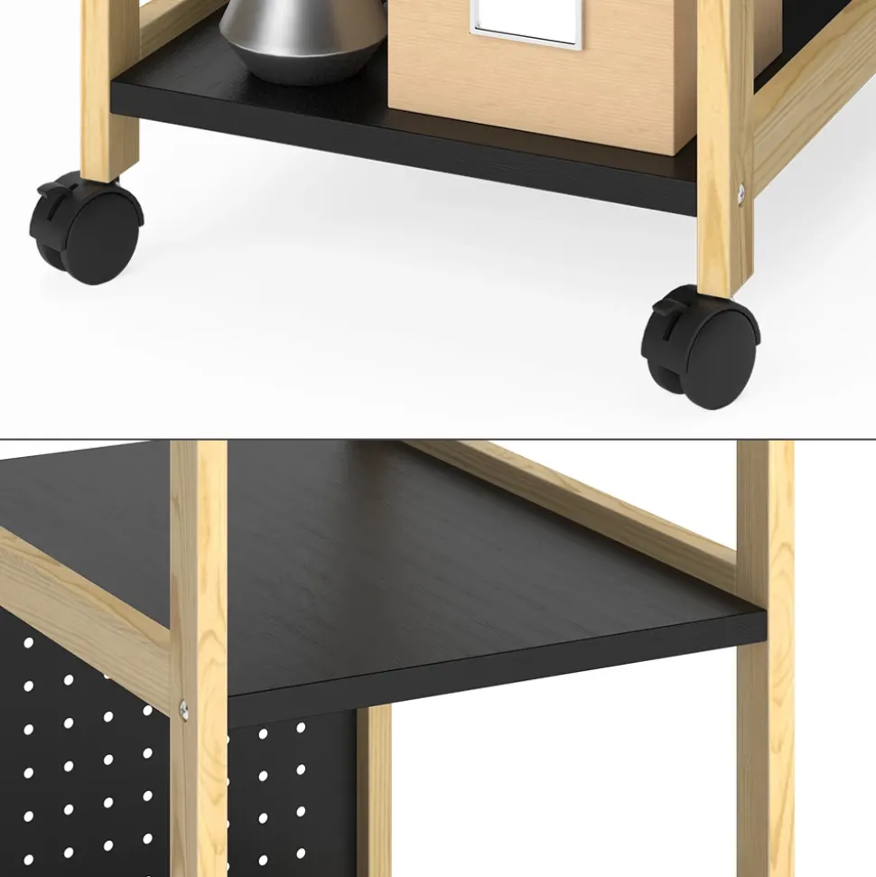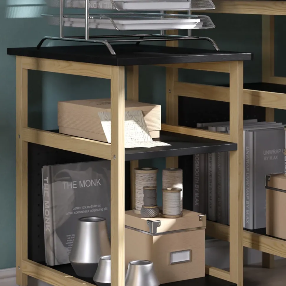 Der Standregal Elvia besticht durch seine moderne Kombination aus schwarzem Metall und Kiefernholz, die sowohl Stabilität als auch zeitlosen Stil bietet. Mit seinen kompakten Maßen eignet es sich ideal zur platzsparenden Aufbewahrung und fügt sich harmonisch in unterschiedlichste Wohnräume ein.