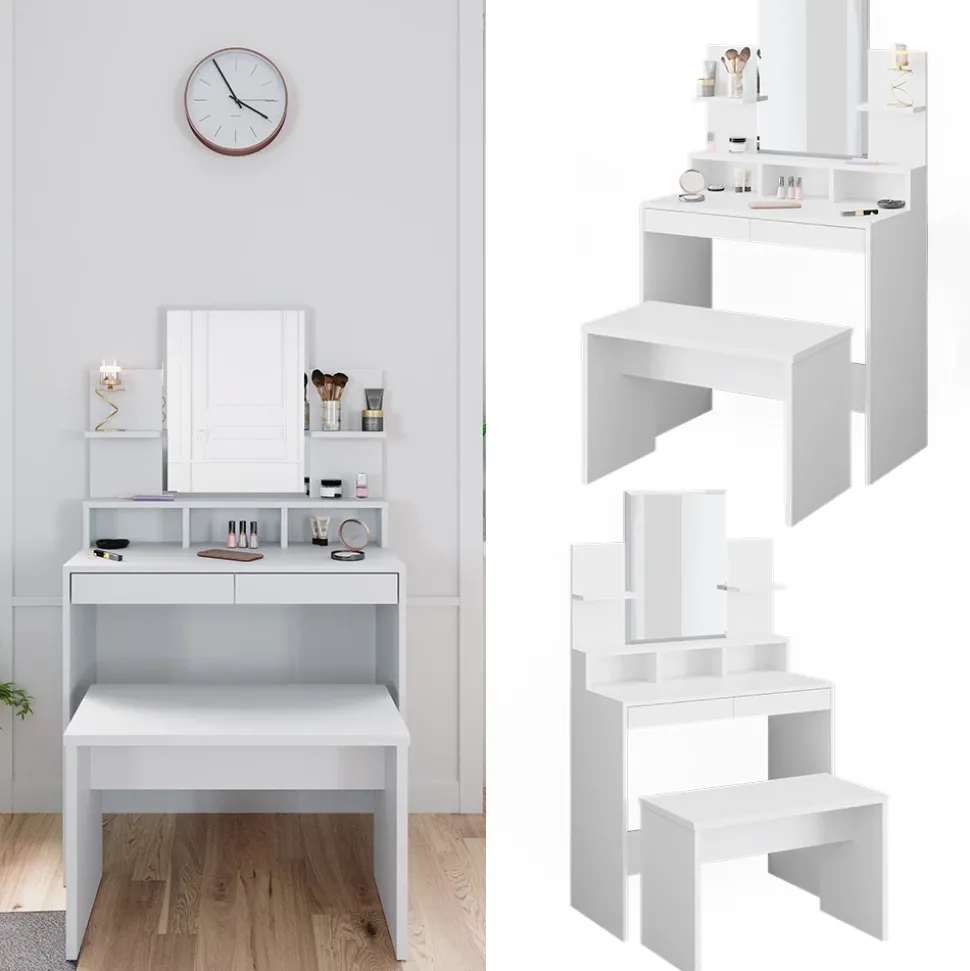 - MAßE: Der Frisiertisch hat eine Breite von 80 cm, eine Höhe von 140 cm und eine Tiefe von 40 cm. Alle detaillierten Größen sind auf den Fotos angegeben.