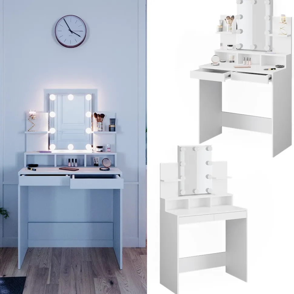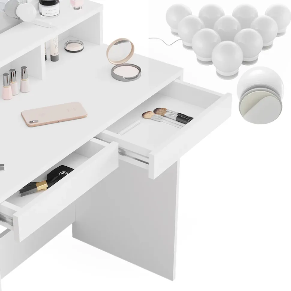 - LIEFERUMFANG: Schminktisch, LED-Lichterkette, Montageanleitung, Montagematerial
