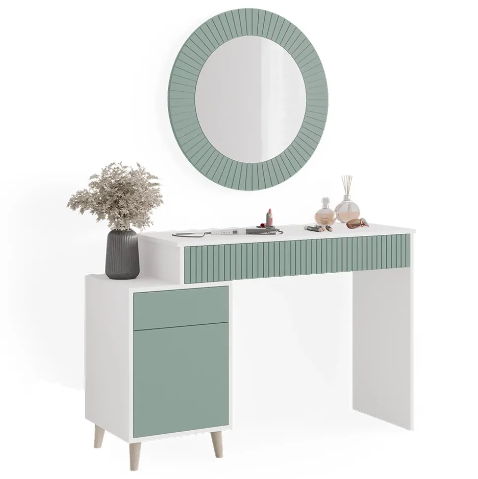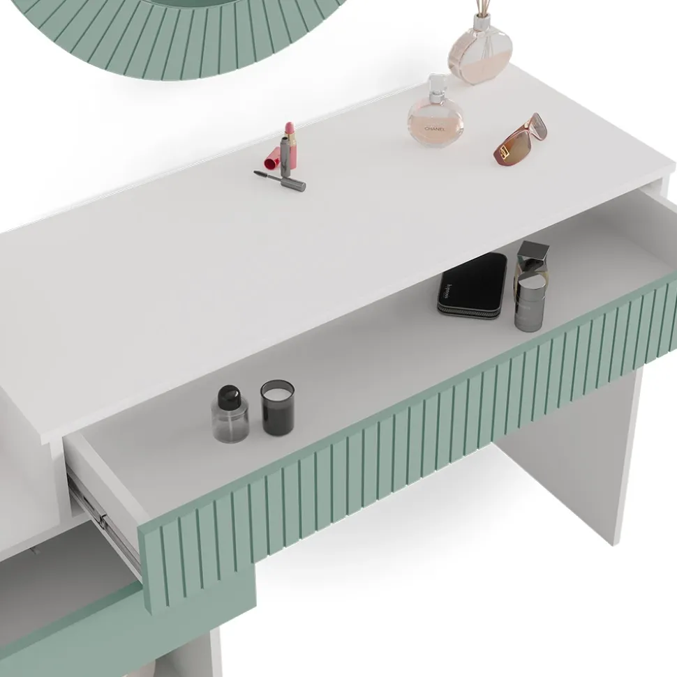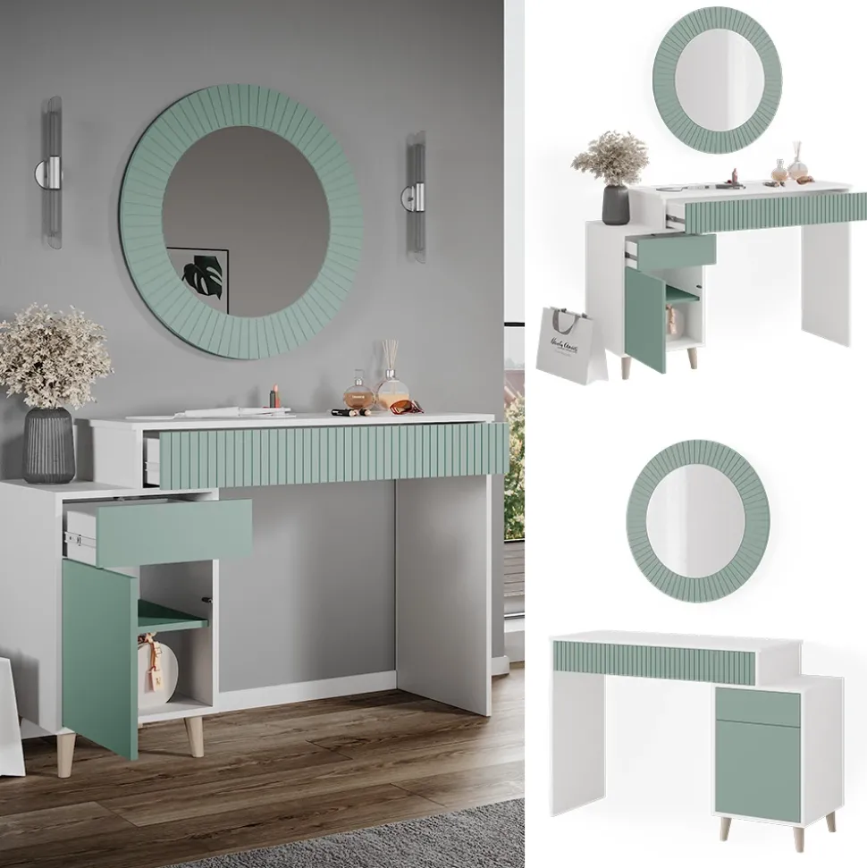 - Der elegant runde gerahmte Spiegel und die zwei einziehbaren Schubladen machen den Frisiertisch mit Spiegel perfekt für das Schminken und Stylen.
