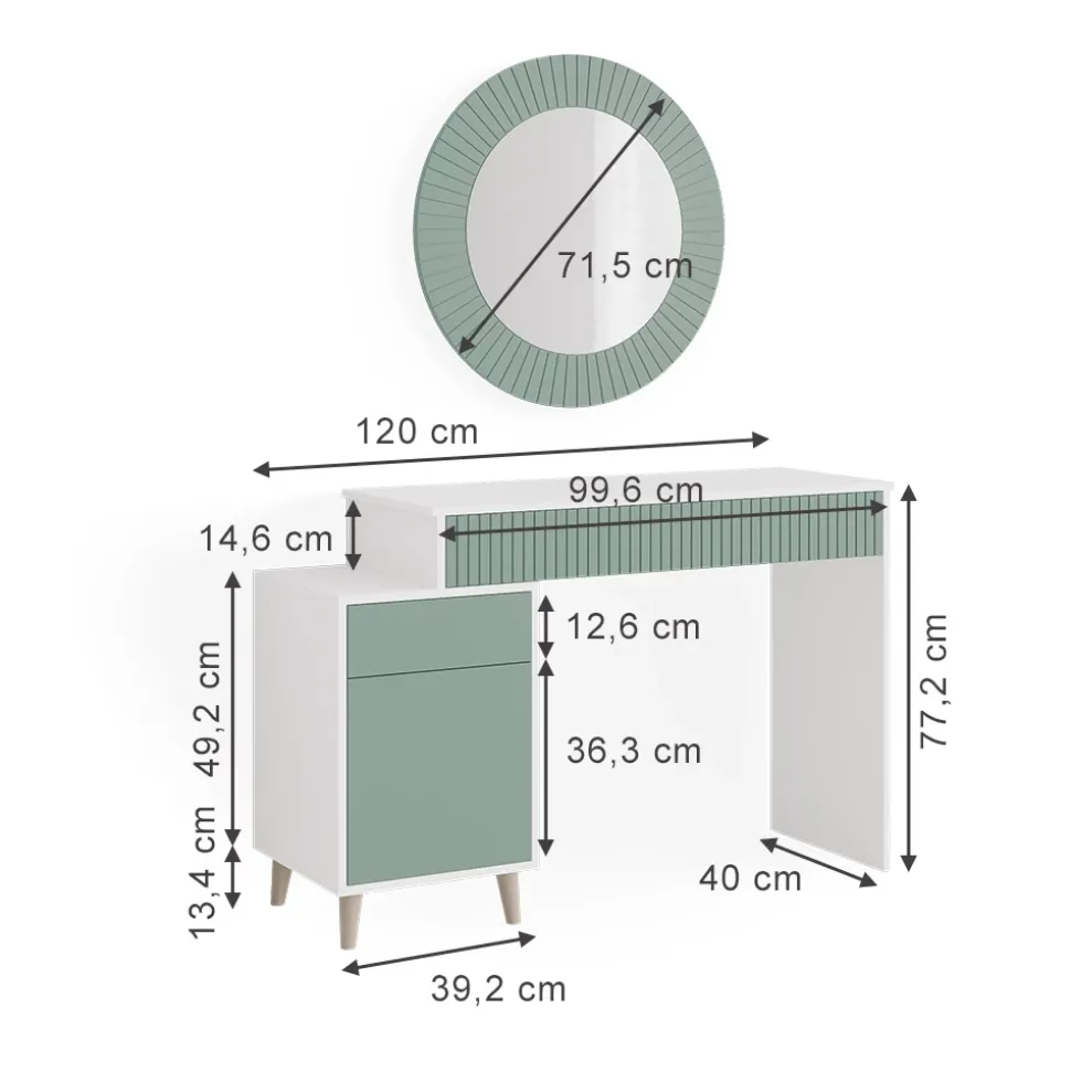 - MAßE: Der Kosmetiktisch hat eine Breite von 120 cm, eine Höhe von 77 cm und eine Tiefe von 40 cm. Alle detaillierten Größen sind auf den Fotos angegeben.