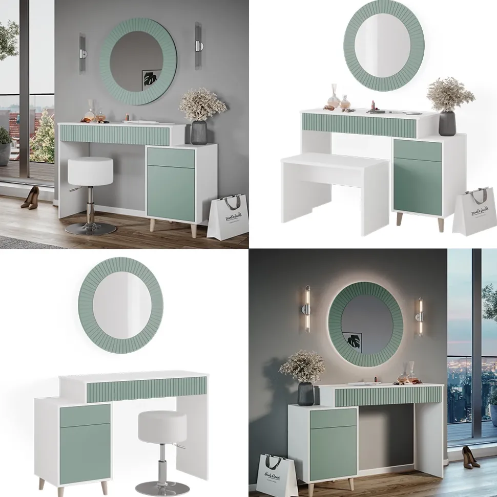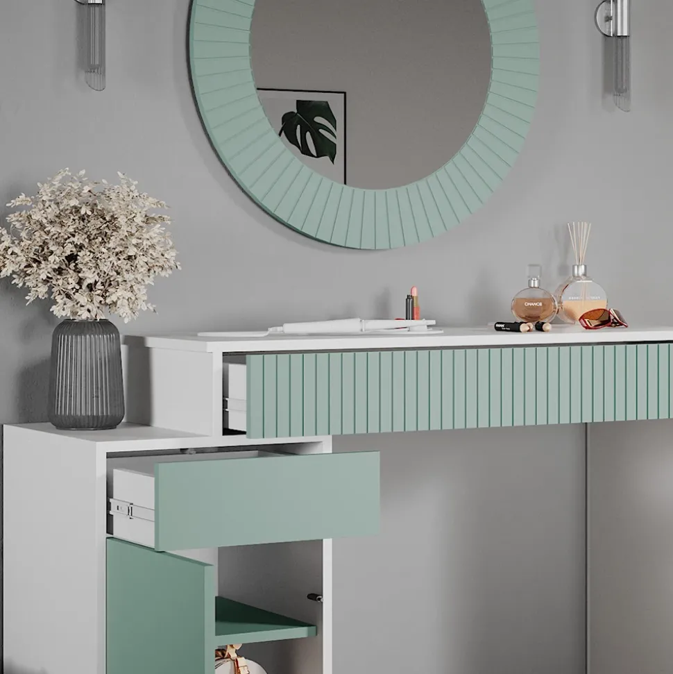 Die Möbelserie „Arles“ umfasst Schminktische mit verschiedenen Optionen für individuelle Einheiten und zusätzliche Verbesserungen. Gestalten Sie Ihren Raum nach Ihren Vorlieben und Bedürfnissen und verleihen Sie Ihrem Schminkbereich einen Hauch von Luxus.