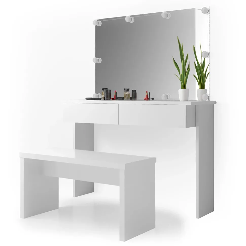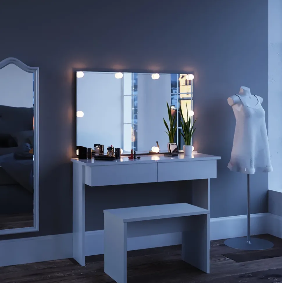 - LIEFERUMFANG: Schminktisch, Sitzbank, LED-Lichterkette, Montageanleitung, Montagematerial