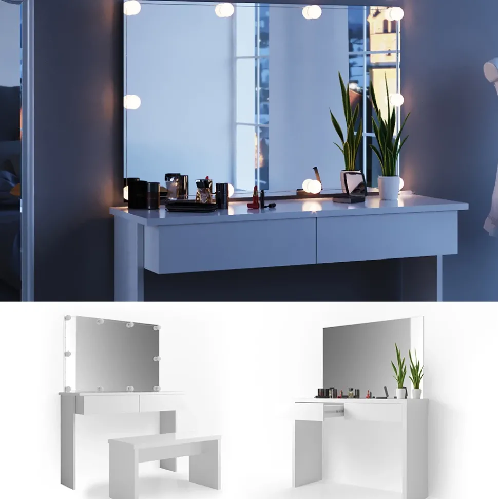 - Gute Entscheidung – Die Frisierkommode mit Beleuchtung und Hocker „Azur“ bietet optimales Design und ist universell für jedes Haus geeignet.