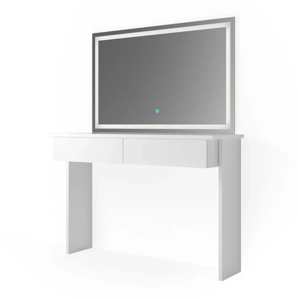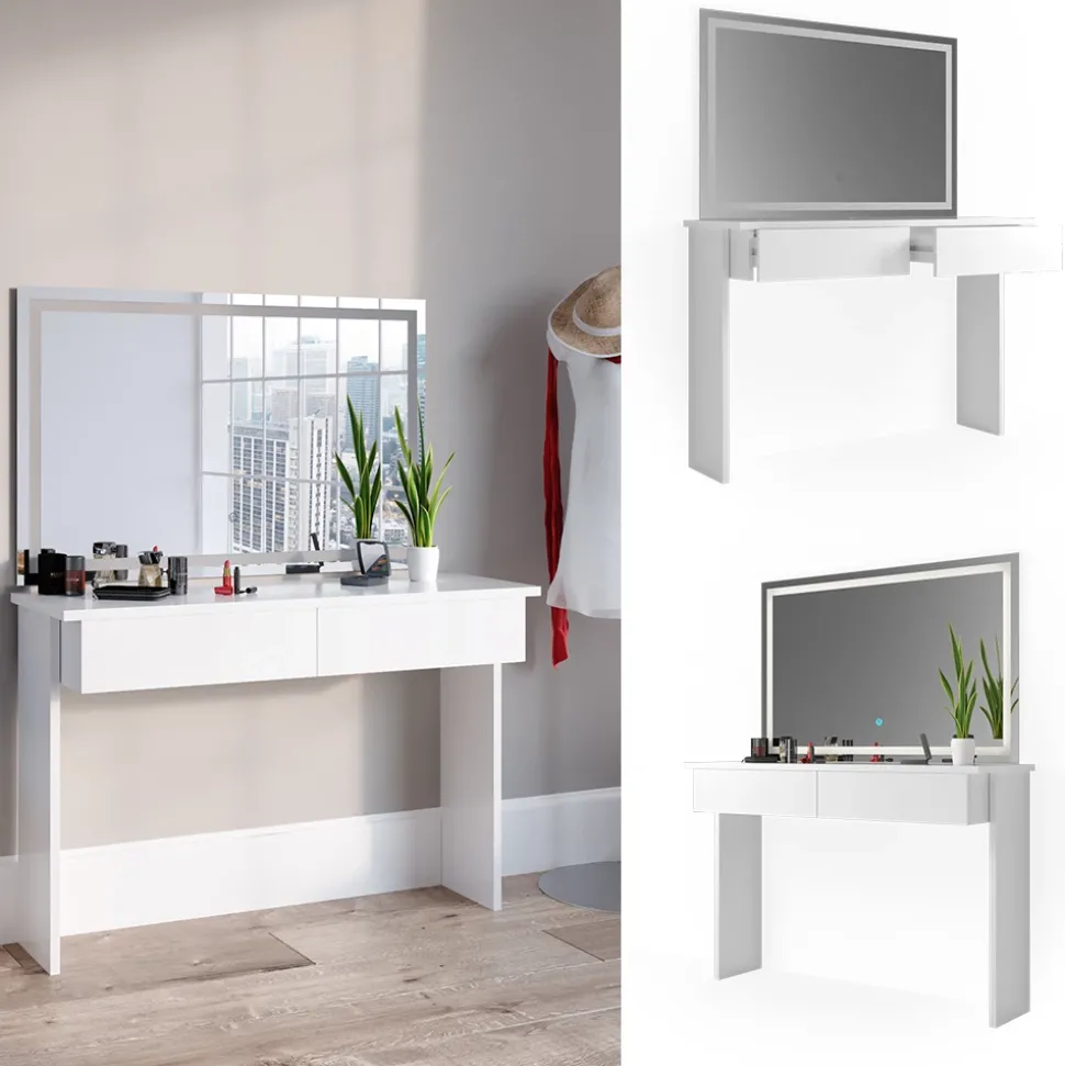 - Kosmetiktisch mit Spiegel – zwei ausziehbare Kästen, großer rechteckiger Spiegel und robuste Konstruktion für optimale Funktionalität.