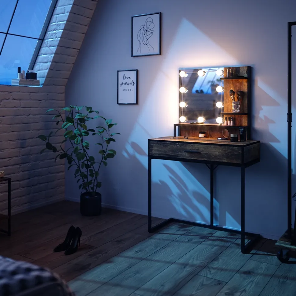 - LIEFERUMFANG: Schminktisch, LED-Lichterkette, Montageanleitung, Montagematerial
