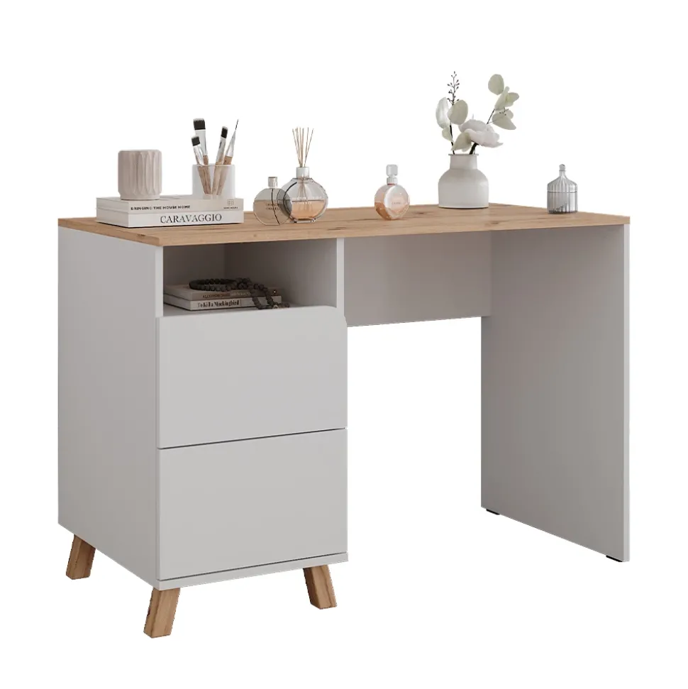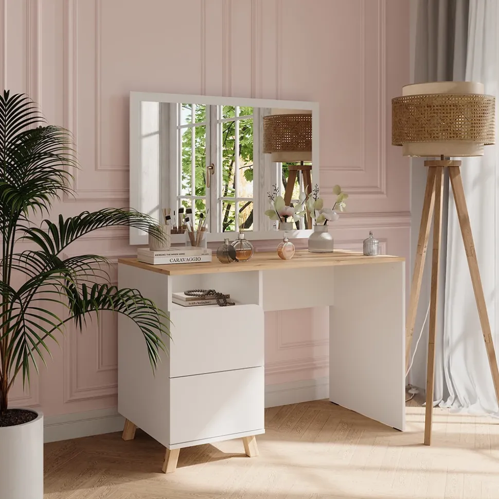 - Der Kosmetiktisch besticht durch seine modernen Holzbeine und bietet viel Stauraum. Ein stilvoller Begleiter für die tägliche Beauty-Routine.