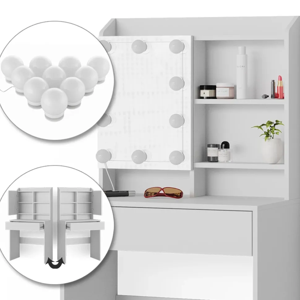 - LIEFERUMFANG: Schminktisch, LED-Lichterkette, Montageanleitung, Montagematerial