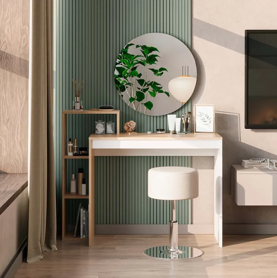 - MATERIAL: Der Schminktisch besteht aus pflegeleichter Spanplatte, 16 mm, Melaminharzbeschichtung