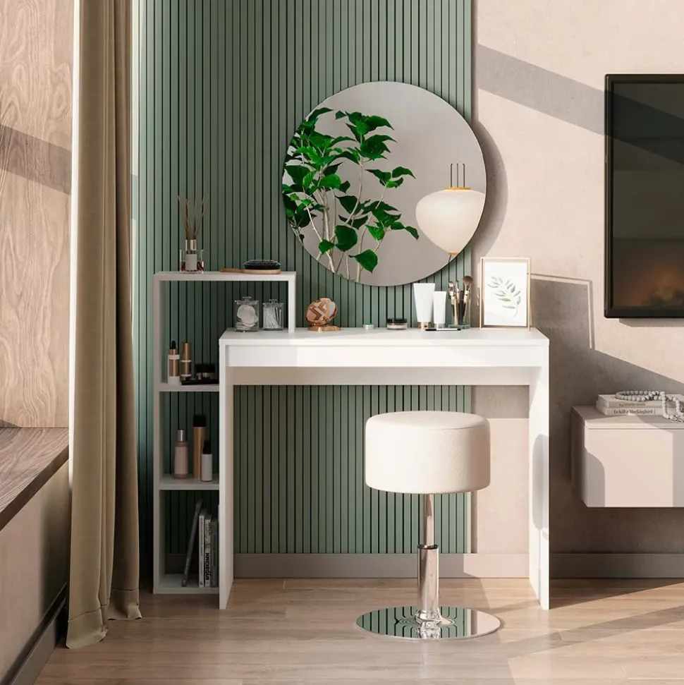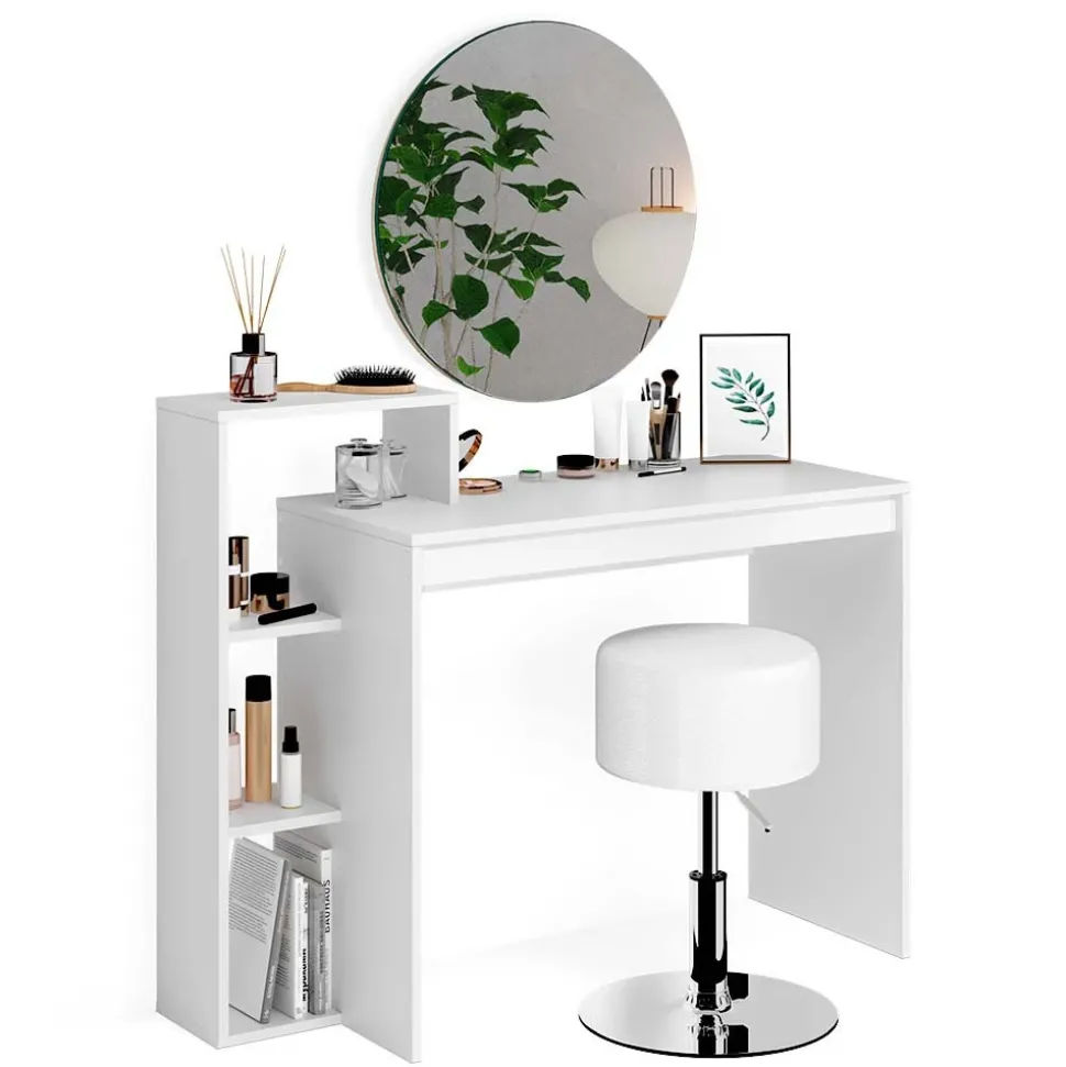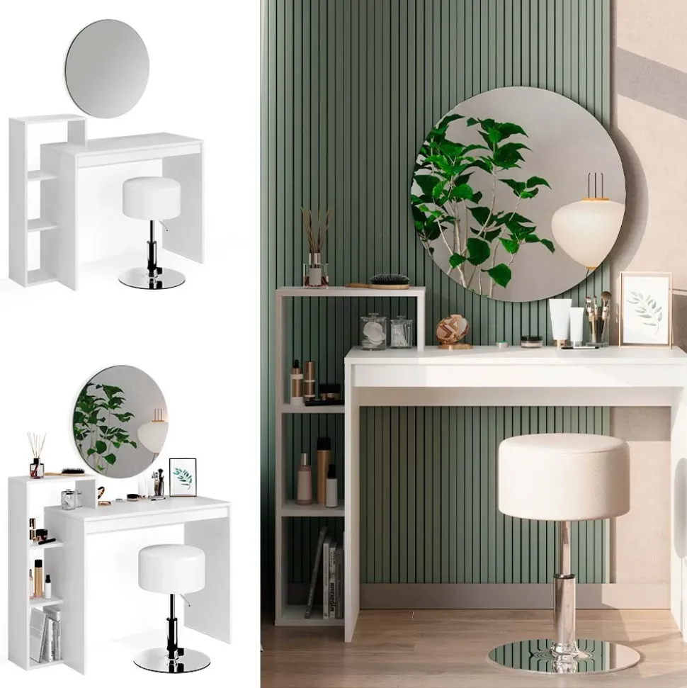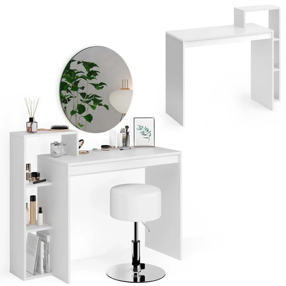 - Der Kosmetiktisch mit Spiegel verfügt über offene Regale und ist ideal für kleine Räume geeignet. Platzsparend und praktisch für die Aufbewahrung von Schminkutensilien.