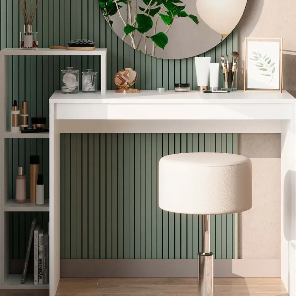 - MATERIAL: Der Schminktisch besteht aus pflegeleichter Spanplatte, 16 mm, Melaminharzbeschichtung