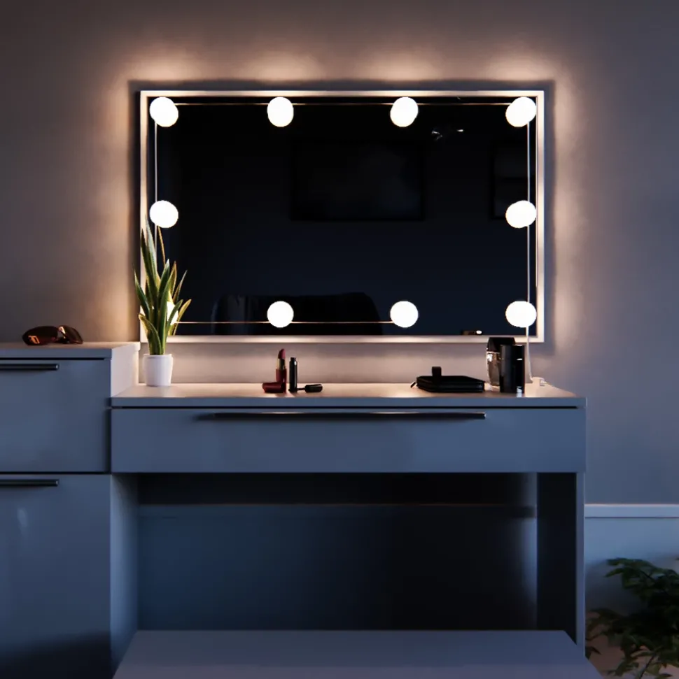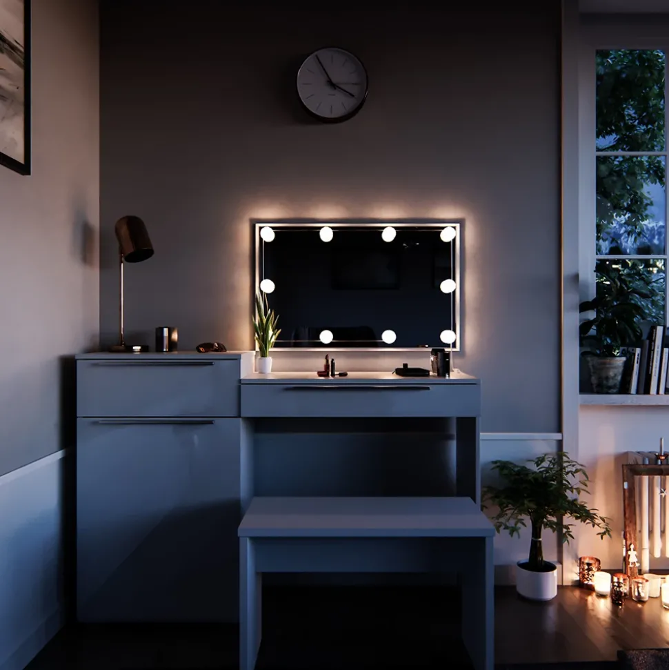 - LIEFERUMFANG: Schminktisch, LED-Lichterkette, Sitzbank, Montageanleitung, Montagematerial