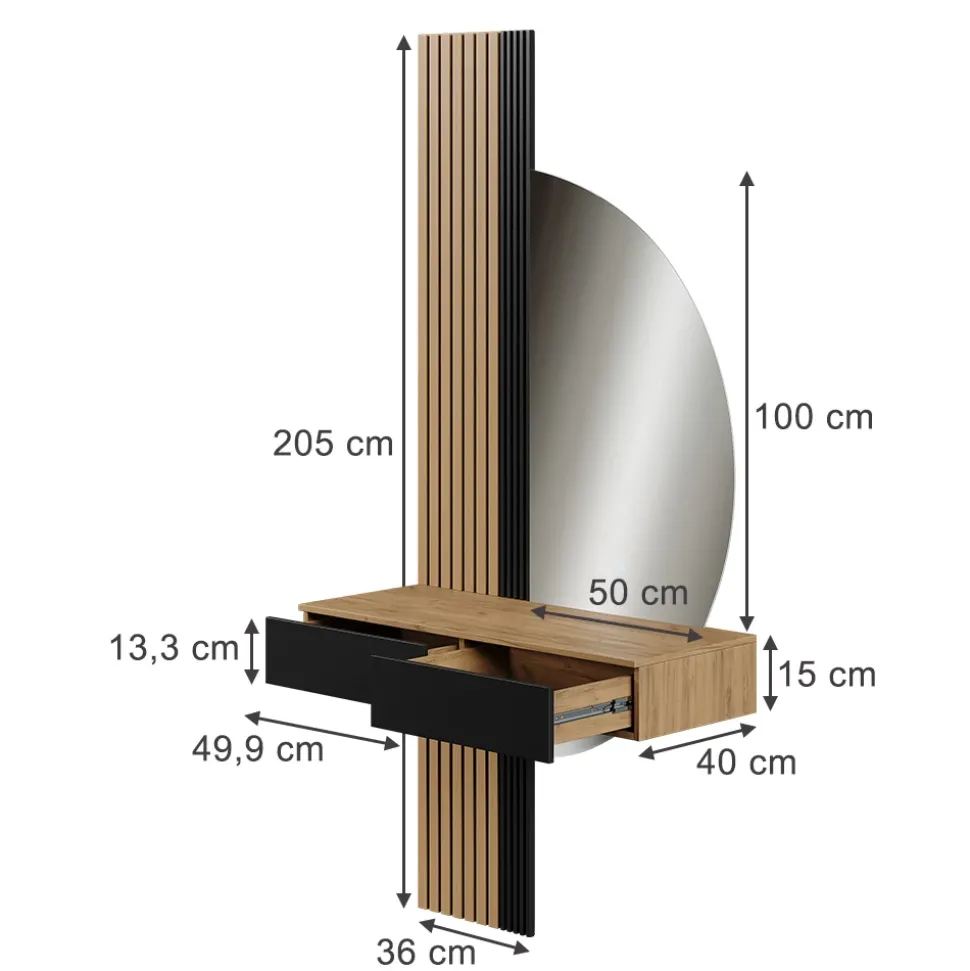 - MAßE: Der Kosmetiktisch hat eine Tiefe von 40 cm, eine Breite von 100 cm und eine Höhe von 205 cm. Die detaillierten Größen sind auf den Fotos angegeben.