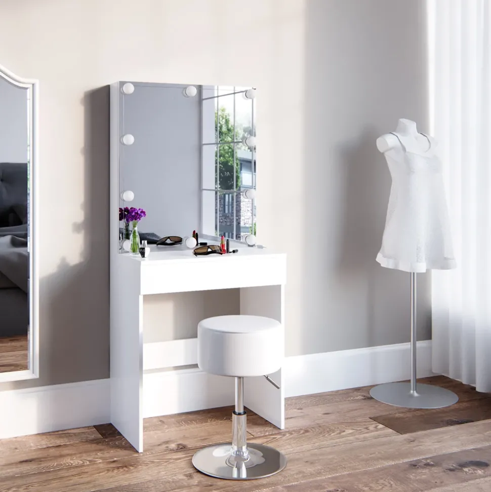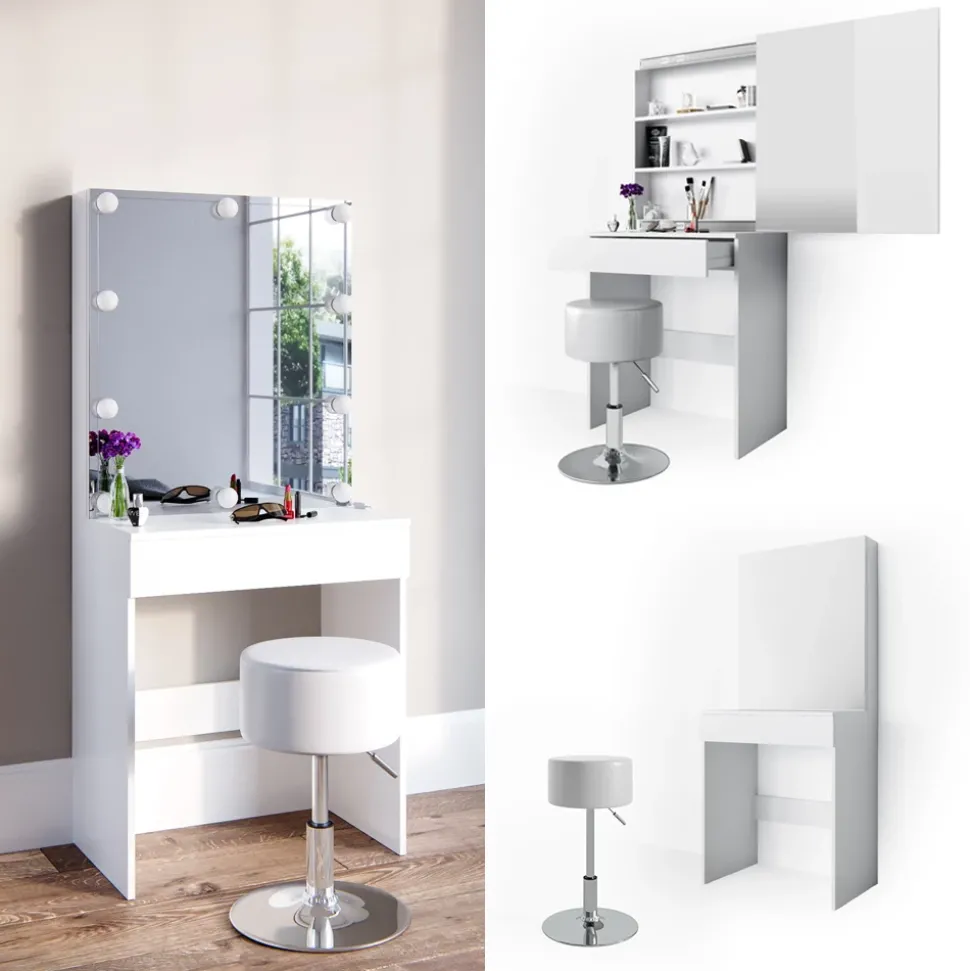 - LIEFERUMFANG: Schminktisch mit Spiegel, Hocker, Montageanleitung, Montagematerial