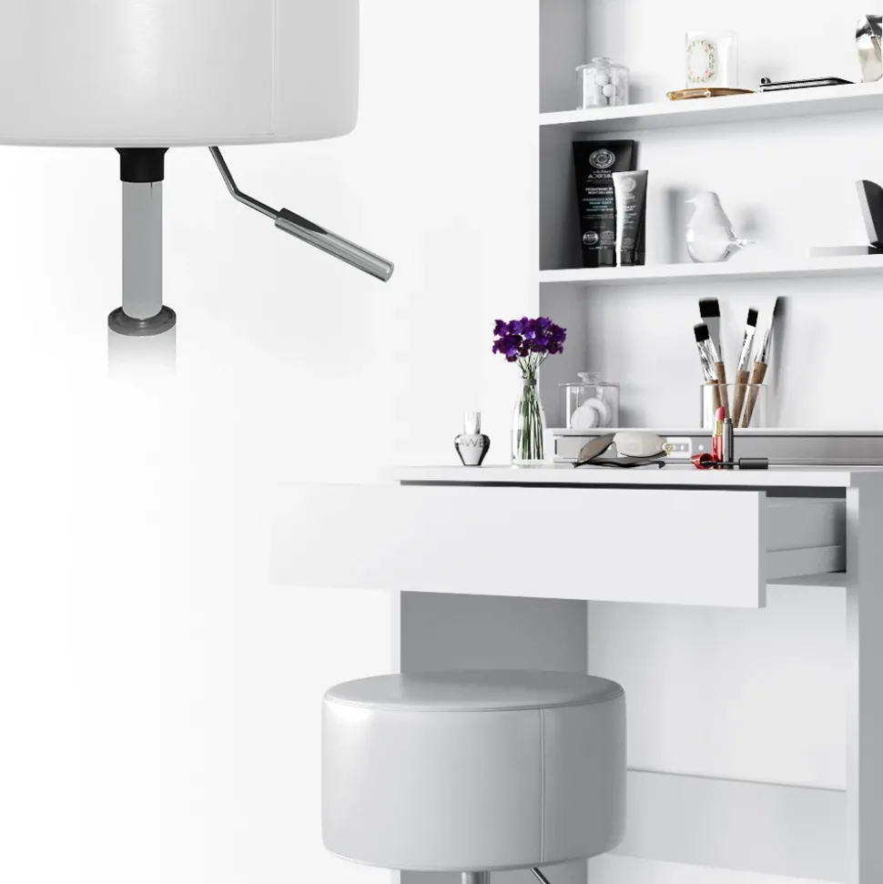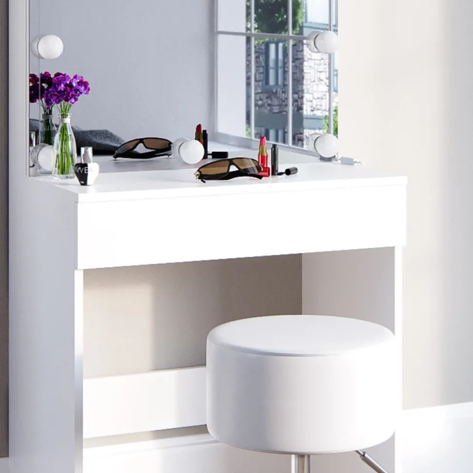 - MATERIAL: Die Schminkkommode besteht aus pflegeleichter Spanplatte 16 mm, mit einer Melaminharzbeschichtung