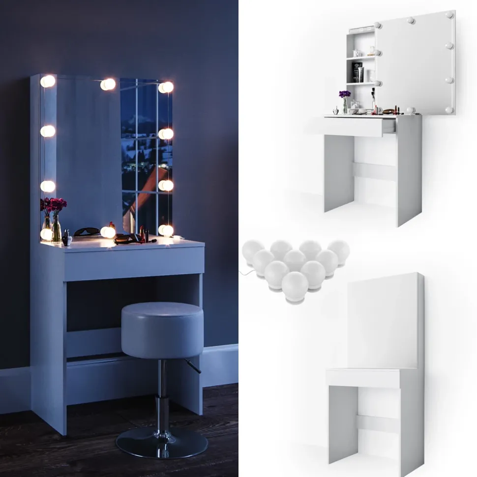 - LIEFERUMFANG: Schminktisch, LED-Lichterkette, Montageanleitung, Montagematerial