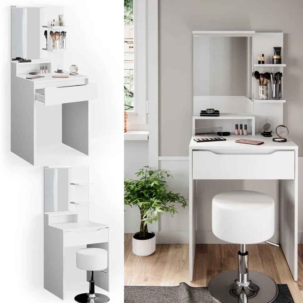 - LIEFERUMFANG: Schminktisch mit Spiegel, Hocker, Montageanleitung, Montagematerial