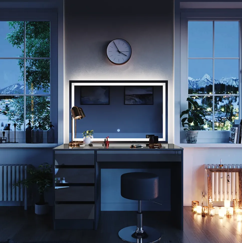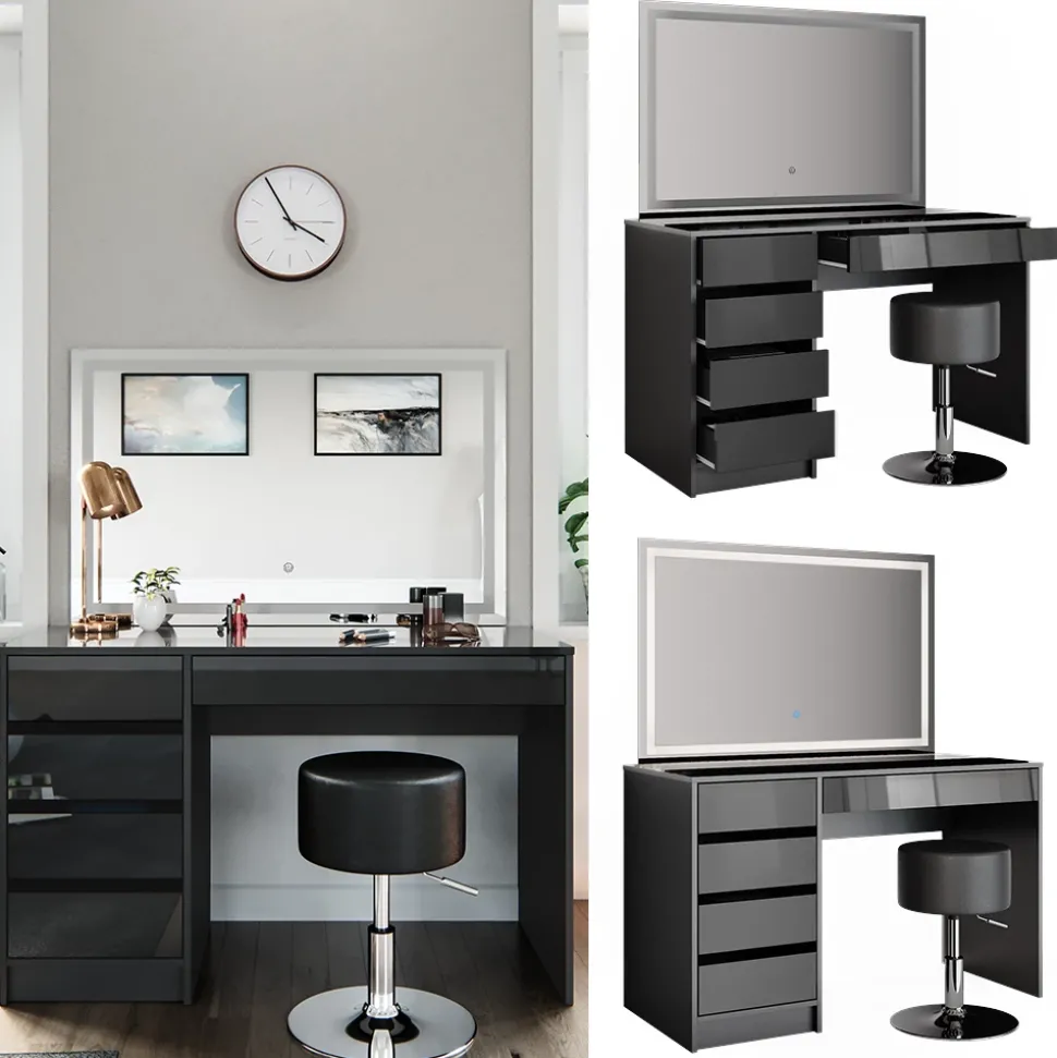 - LIEFERUMFANG: Schminktisch, Hocker für Frisiertisch, LED-Spiegel, Montageanleitung, Montagematerial.
