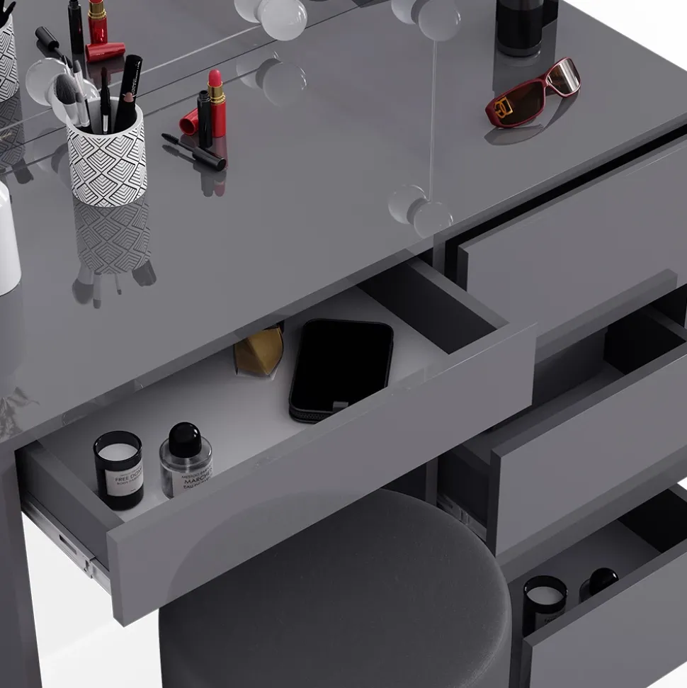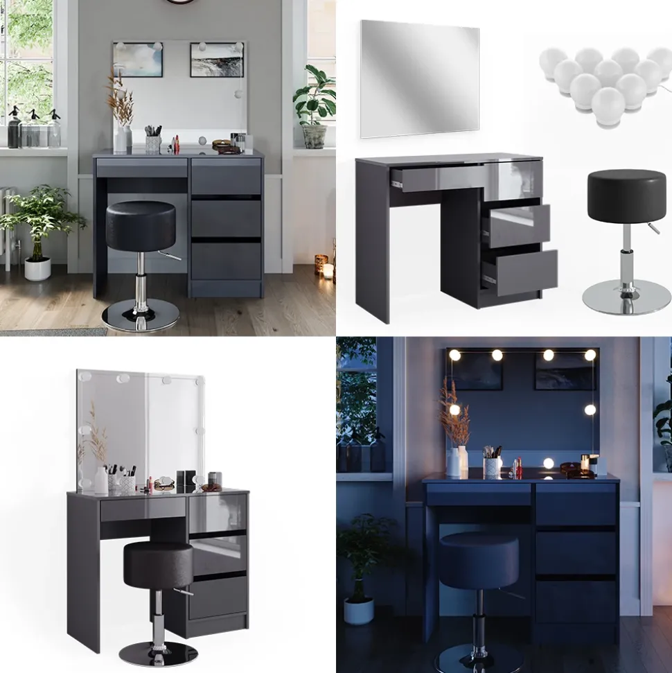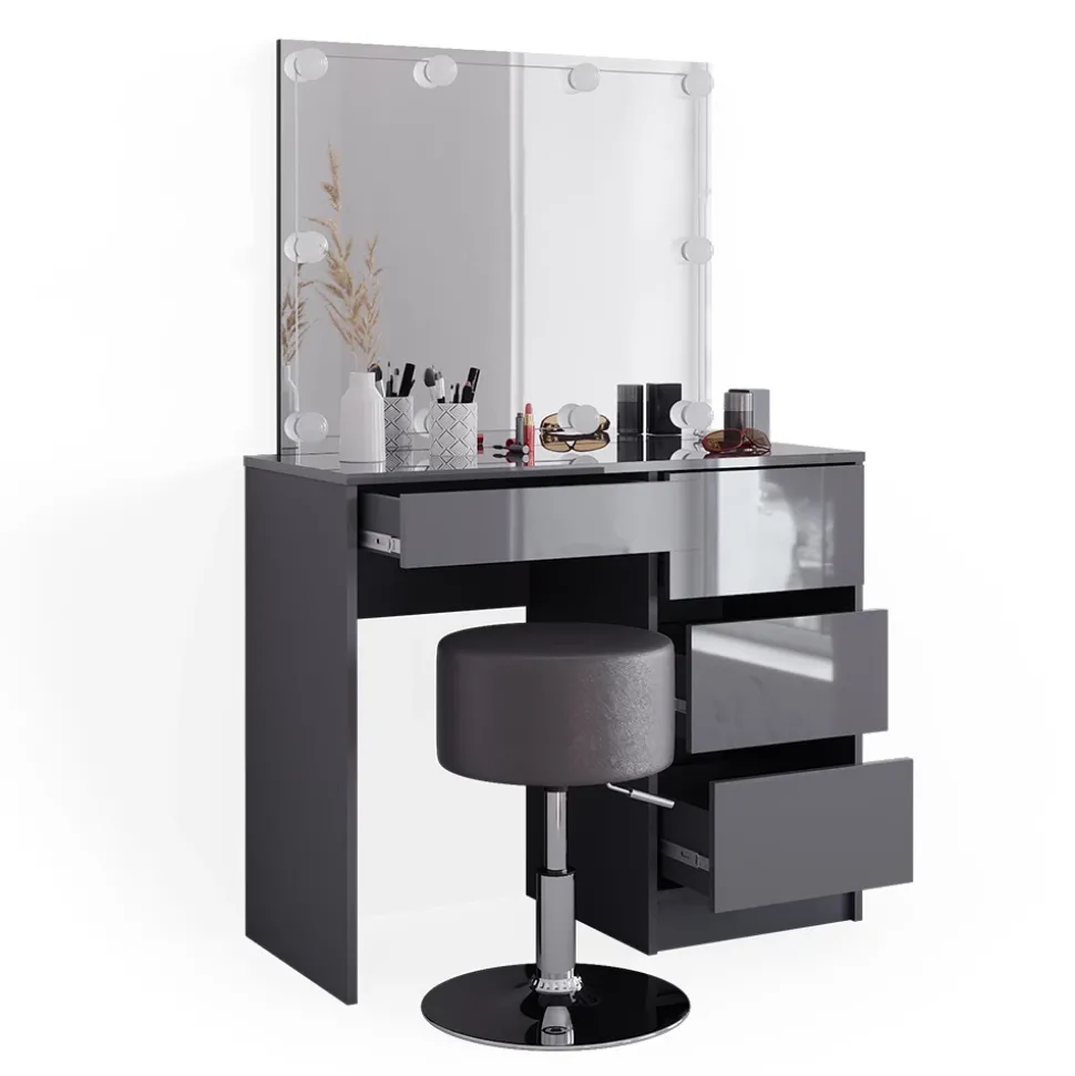 - Profitieren Sie von unserer Schminkkommode, die mit einem eleganten LED-Spiegel und bequemen Hocker geliefert wird.