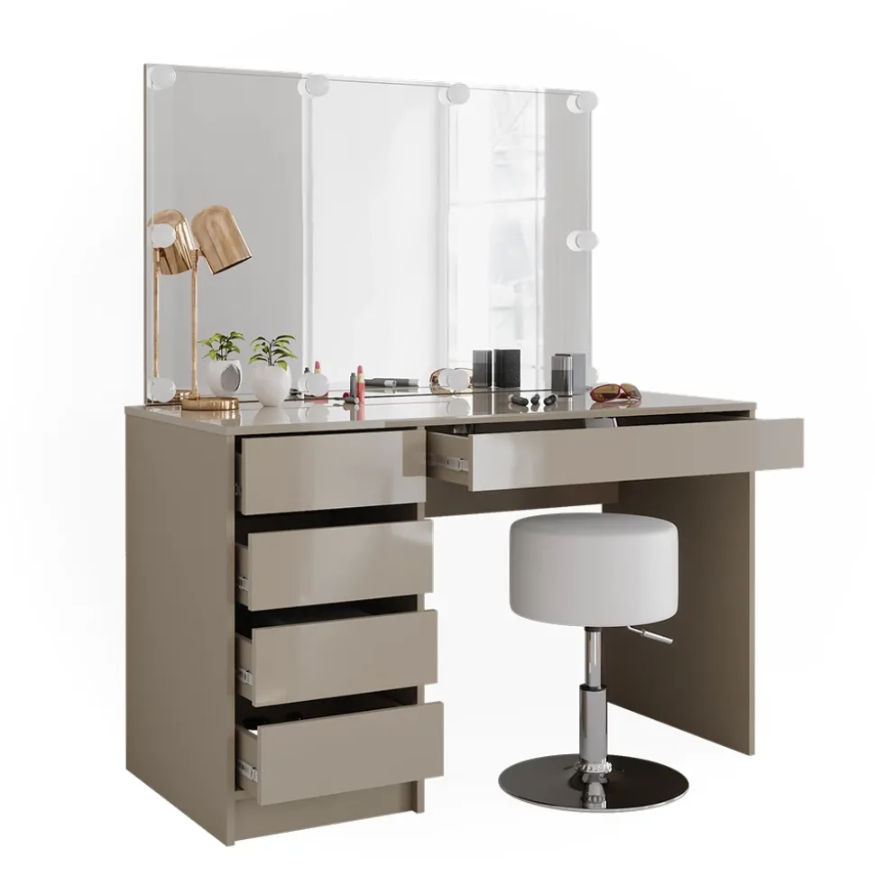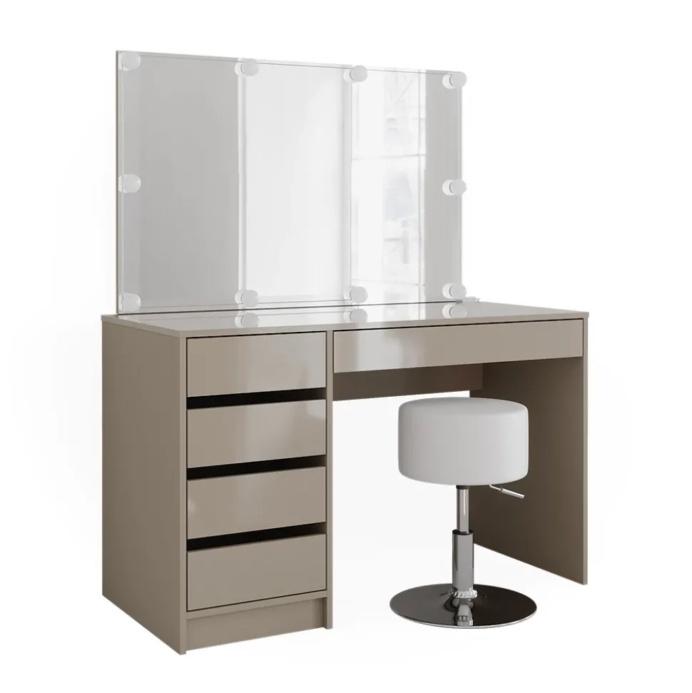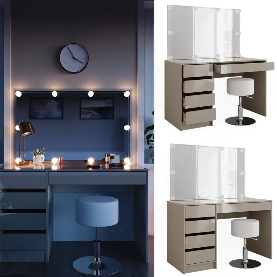 - Die Frisierkommode mit Beleuchtung und Hocker „Sherry“ ist die optimale Wahl für jedes Zuhause. Mit ihrem stilvollen Design und ihrer einfachen Handhabung passt sie perfekt in jede Wohnung.