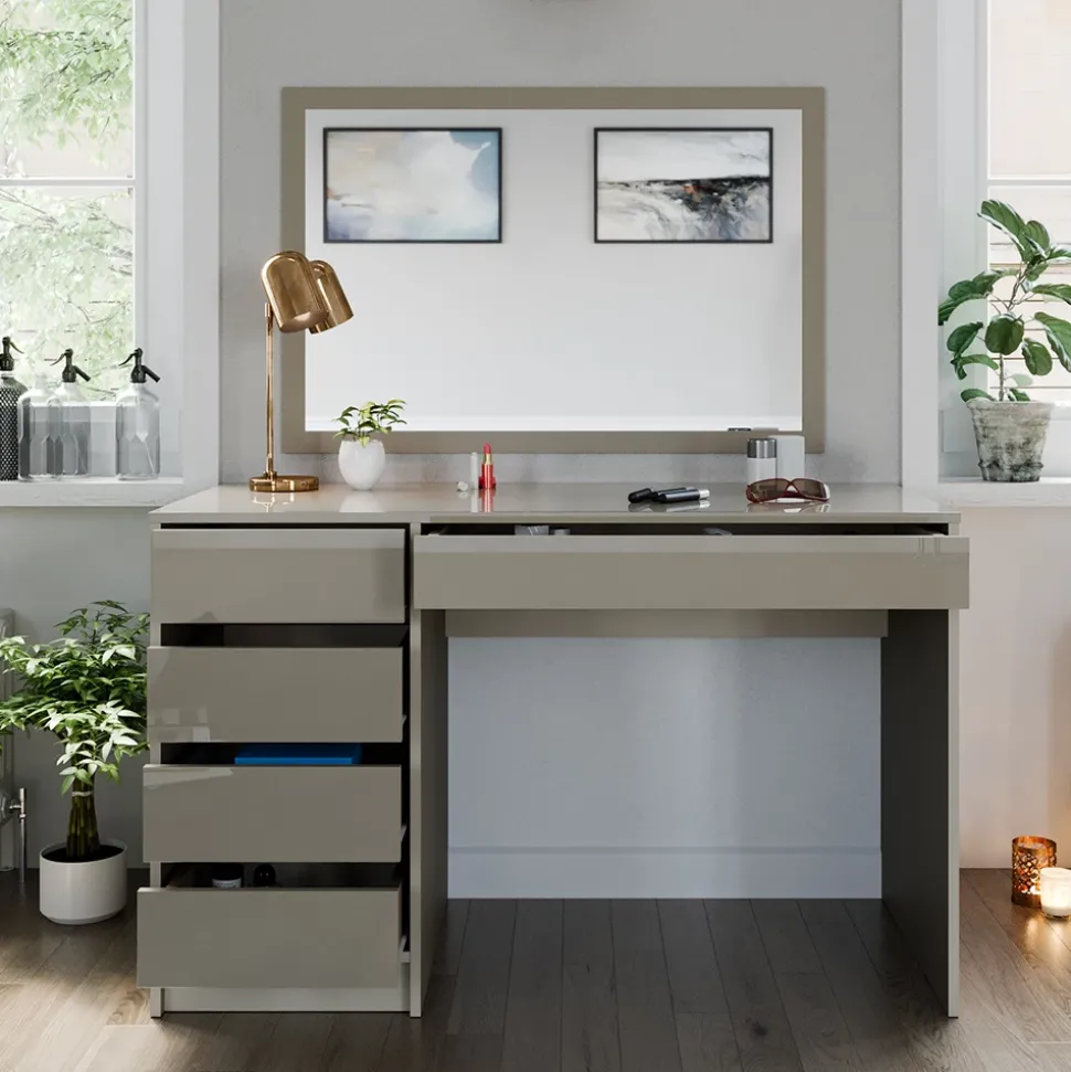 - Mit seinem zeitlosen Design fügt sich die Schminkkommode perfekt in Ihr Schlafzimmer ein. Der moderne Frisiertisch bietet reichlich Stauraum in den Schubladen für Ihr Make-Up und Styling-Bedarf.
