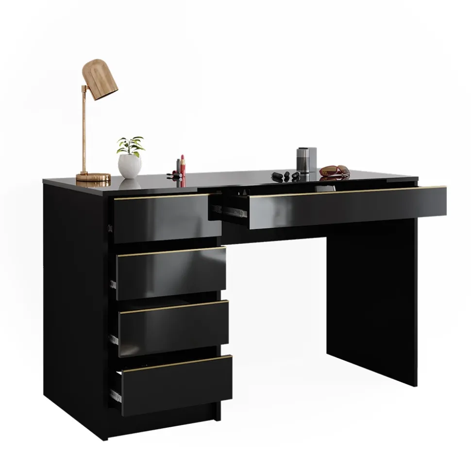 Mit fünf praktischen Schubladen bietet dieser Schminktisch großzügigen Stauraum für all Ihre Beauty-Produkte und Accessoires. Sein zeitloses Design verleiht Ihrem Schlafzimmer eine elegante Note, die nie aus der Mode kommt. Die Montage ist kinderleicht und dank der mitgelieferten Anleitung im Handumdrehen erledigt. Die pflegeleichte Oberfläche ermöglicht Ihnen eine mühelose Reinigung und langanhaltende Freude an diesem stilvollen Möbelstück.