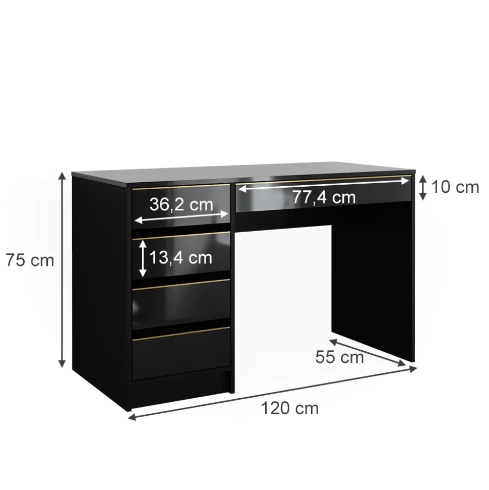 - Entdecken Sie den Schminktisch Sherry: mit seinen Maßen von 120 x 75 cm ist dieser moderne Frisiertisch mit Schubladen die perfekte Ergänzung für Ihr Schlafzimmer.