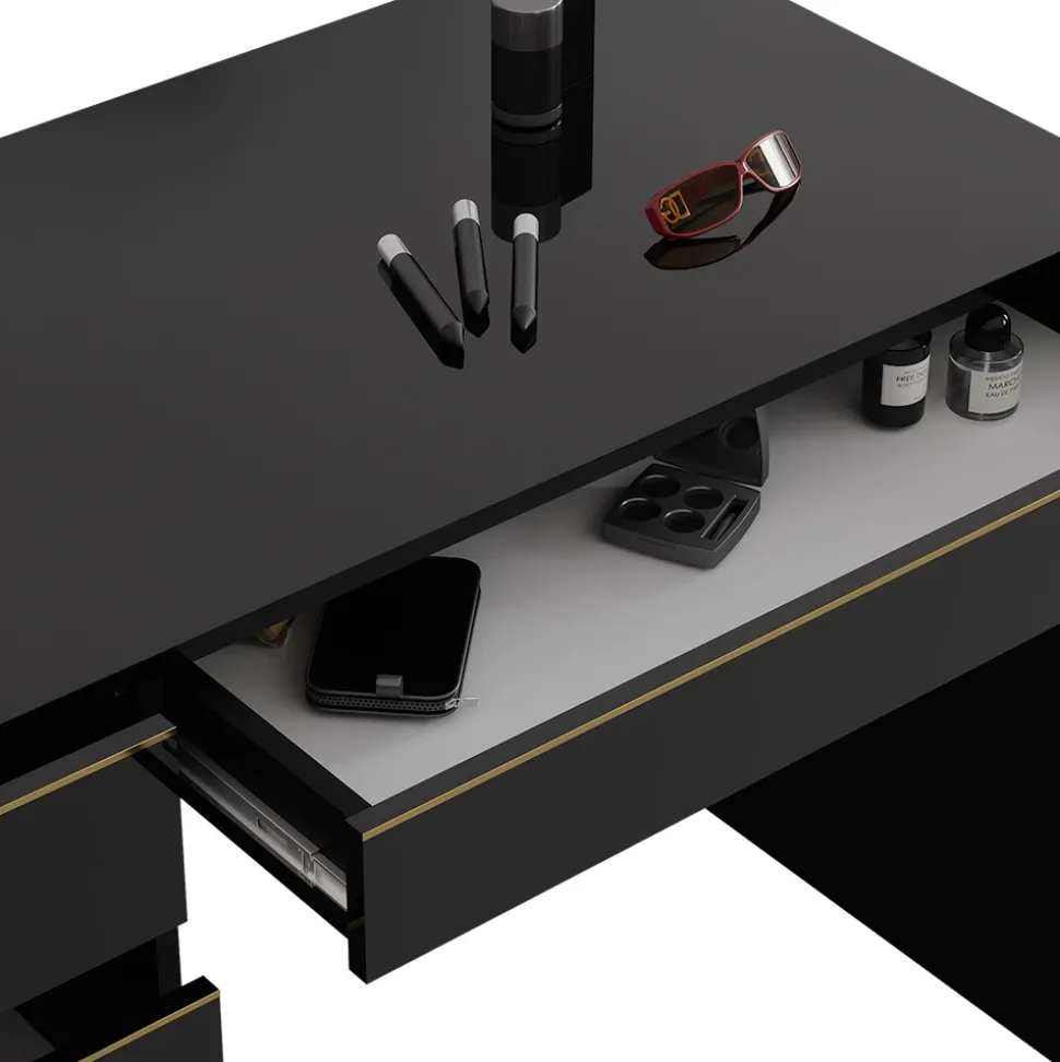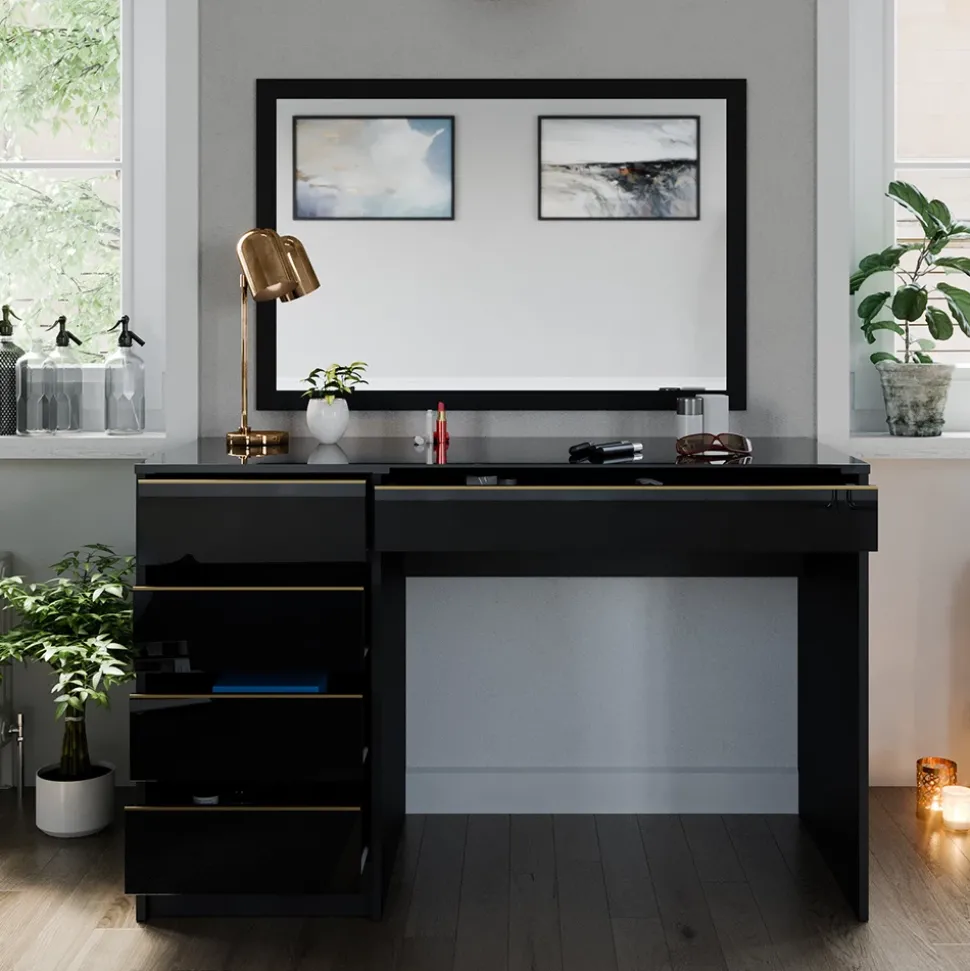 - Mit seinem zeitlosen Design fügt sich die Schminkkommode perfekt in Ihr Schlafzimmer ein. Der moderne Frisiertisch bietet reichlich Stauraum in den Schubladen für Ihr Make-Up und Styling-Bedarf.