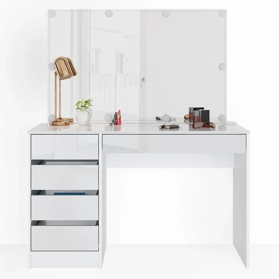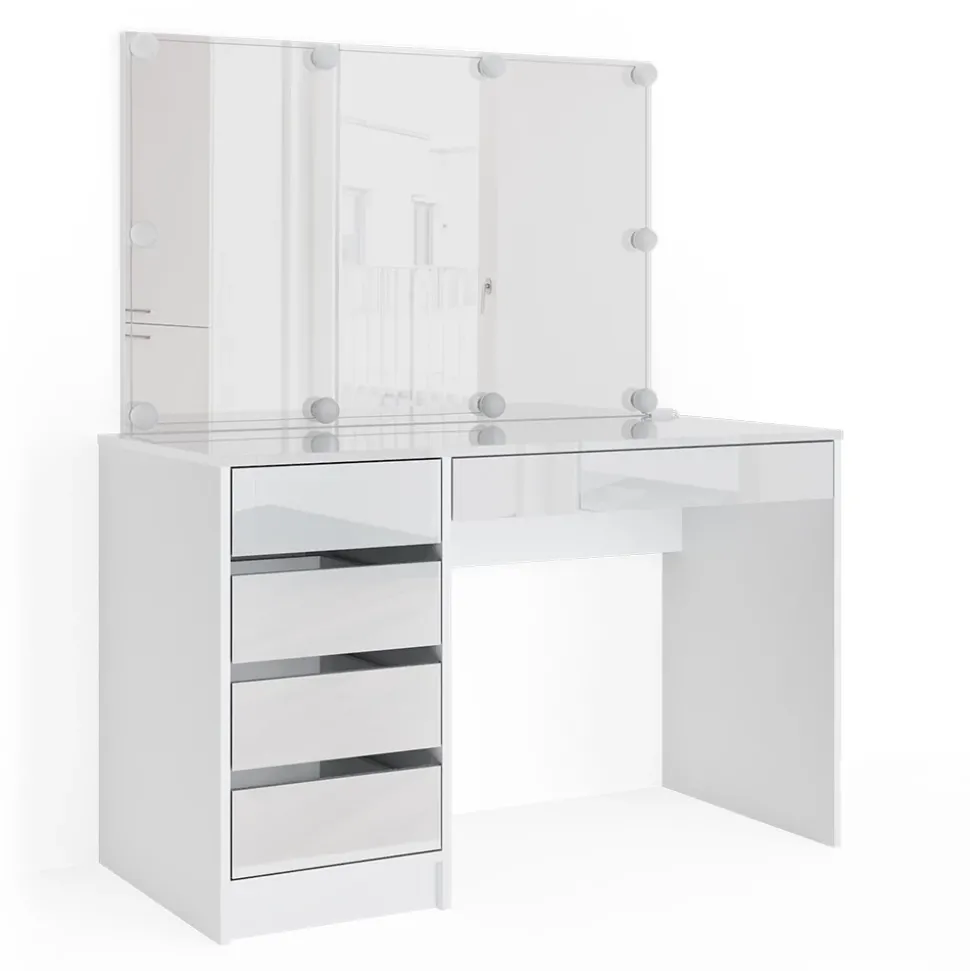 - Funktionaler Kosmetiktisch mit Spiegel und vier geschlossenen Ablagen für eine robuste Aufbewahrung von Kosmetika und Zubehör.