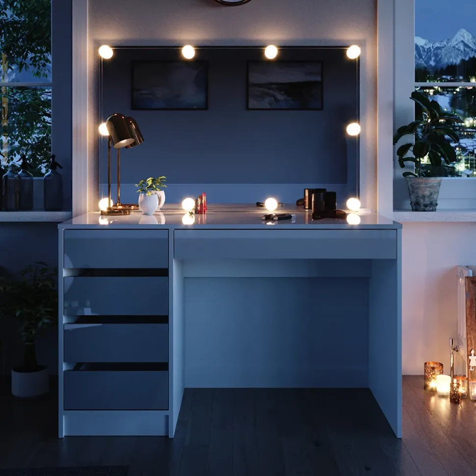 - LIEFERUMFANG: Schminktisch, LED-Lichterkette, Montageanleitung, Montagematerial.