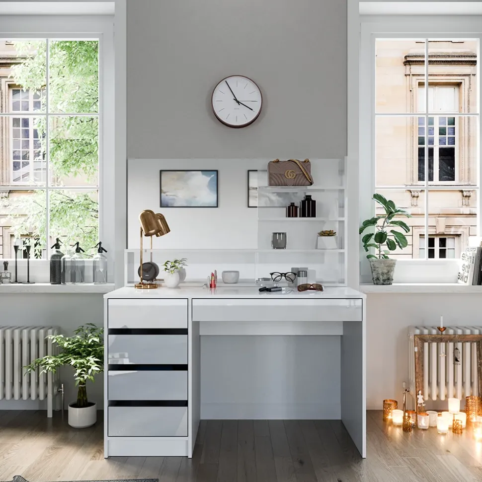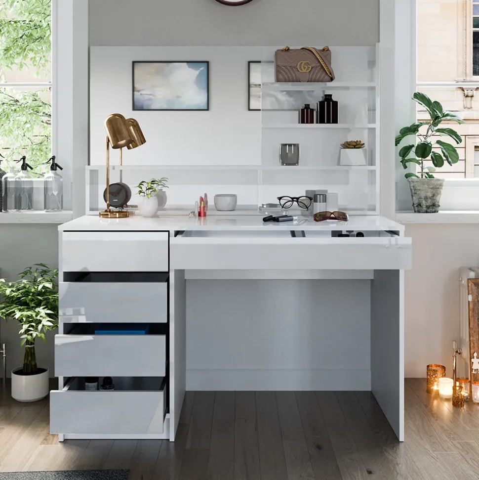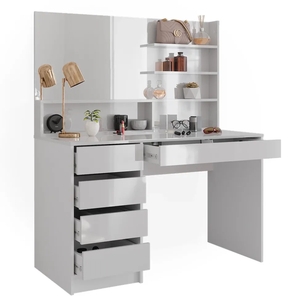 - Profitieren Sie von unserer Schminkkommode mit fünf geräumigen Schubladen, die Platz für all Ihr Make-Up- und Styling-Produkte bieten. Der Spiegel ergänzt Ihr Schönheitsritual perfekt.