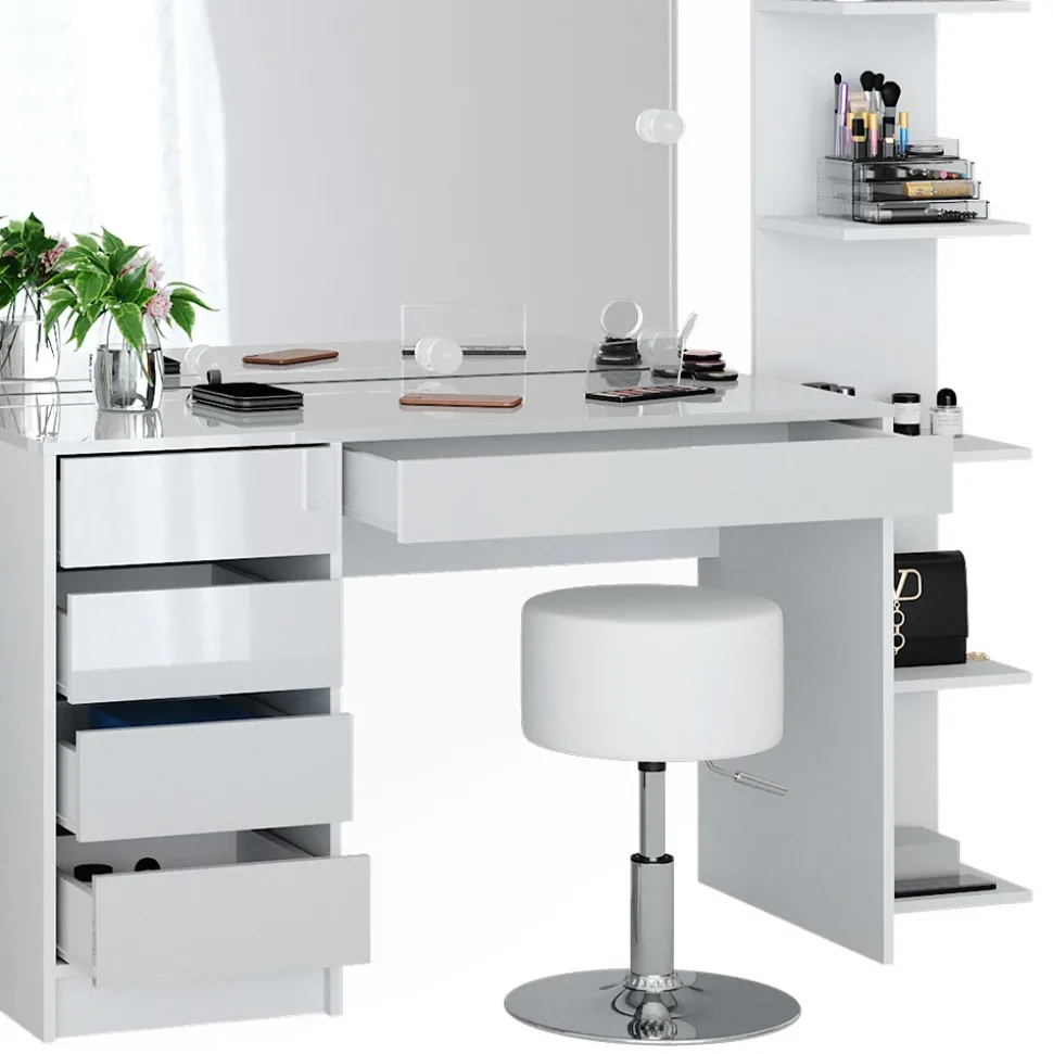 - MATERIAL: Der Schminktisch mit Regalen besteht aus pflegeleichter Spanplatte, 16 mm, Melaminharzbeschichtung