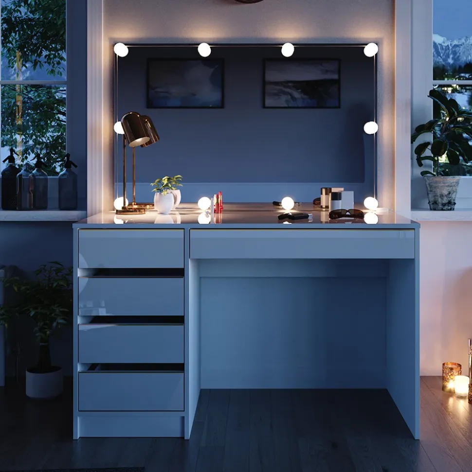 - Die Frisierkommode mit Beleuchtung „Sherry“ ist eine gute Entscheidung für jede Wohnung. Mit ihrem stilvollen Aussehen und einfacher Bedienung wird sie sicherlich ein Highlight in Ihrem Zuhause sein.