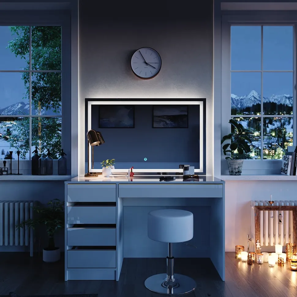 - LIEFERUMFANG: Schminktisch, LED-Spiegel, Hocker, Montageanleitung, Montagematerial.