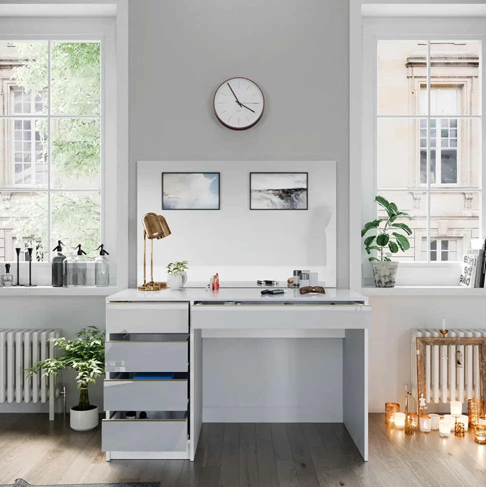 Die Möbelserie „Sherry“ umfasst Einrichtungsgegenstände für das Schlafzimmer, darunter auch Frisiertische. Mit vielen verschiedenen Optionen in verschiedenen Konfigurationen bietet sie vielseitige Gestaltungsmöglichkeiten. Verleihen Sie Ihrem Schlafzimmer mit den Möbeln der „Sherry“ Serie eine persönliche Note.