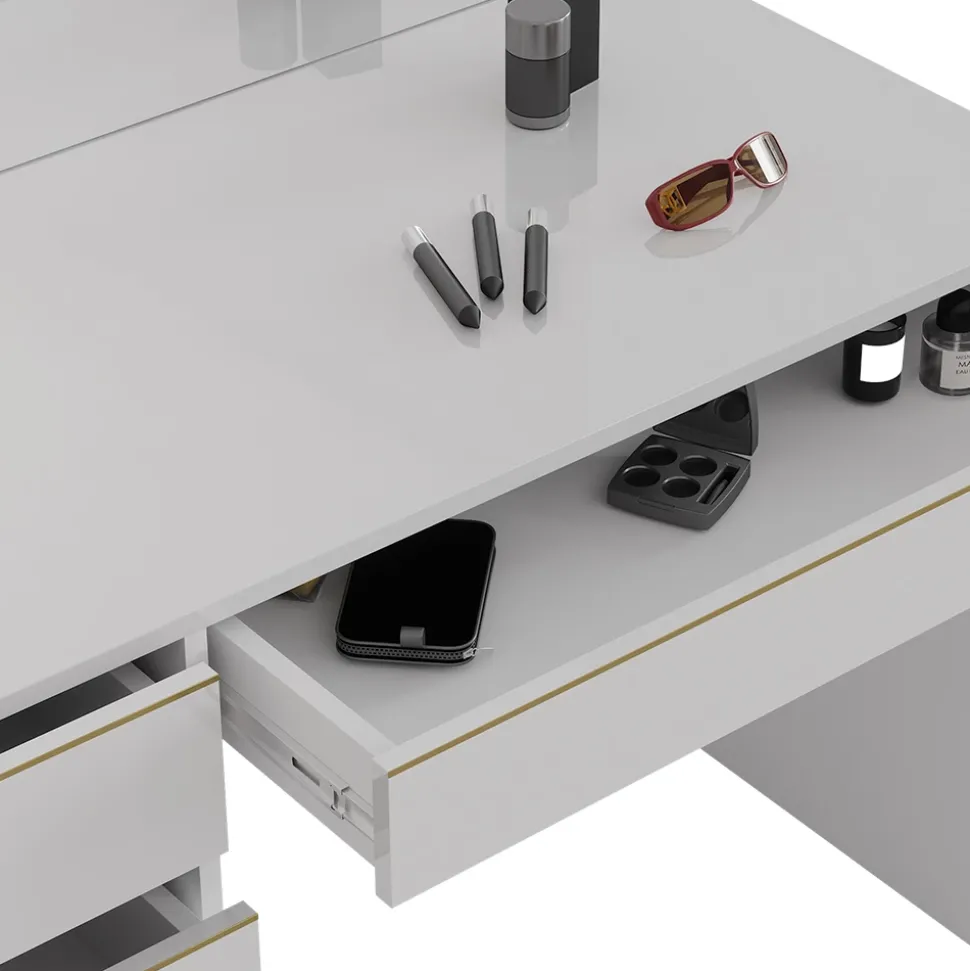 - Die Frisierkommode „Sherry“ ist eine gute Entscheidung für jede Wohnung. Mit ihrem stilvollen Design ist sie einfach zu bedienen und passt sich jedem Raum perfekt an.