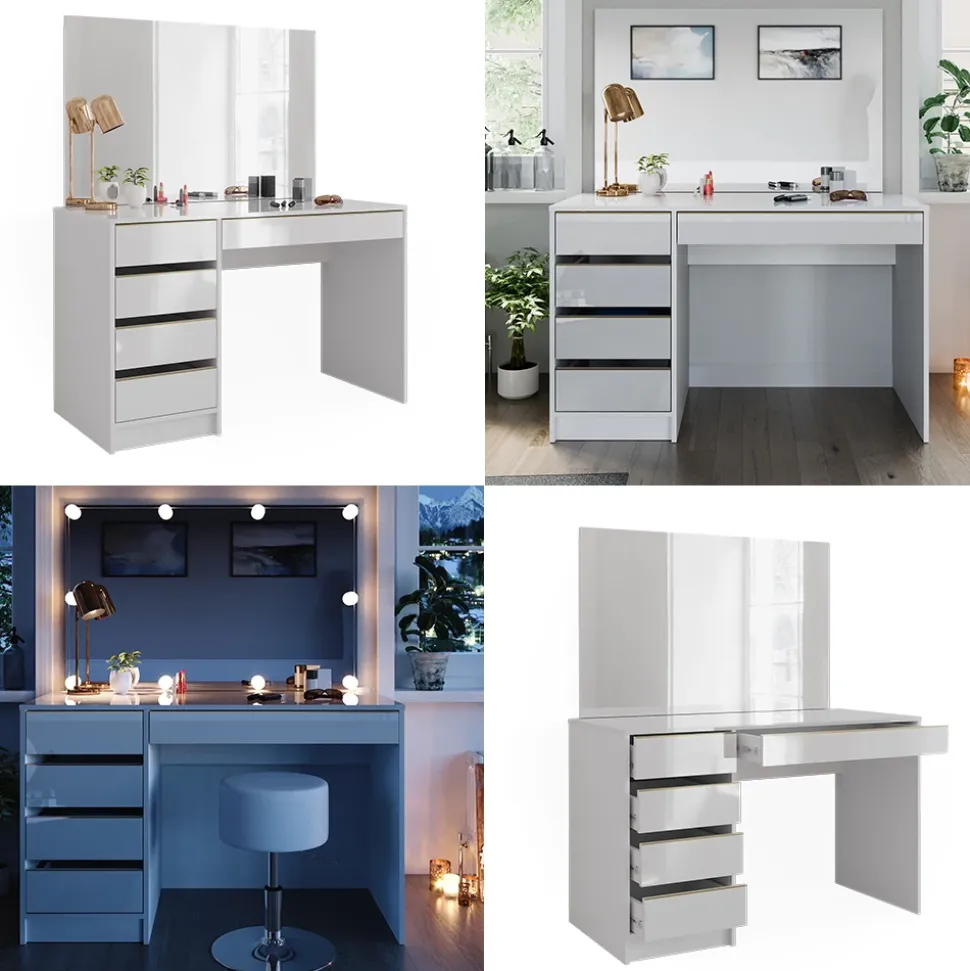 - Der Frisiertisch mit Spiegel bietet praktische Aufbewahrungsmöglichkeiten und ein elegantes Design für Ihr Schlafzimmer. Mit integrierter Beleuchtung für optimale Sicht beim Schminken.