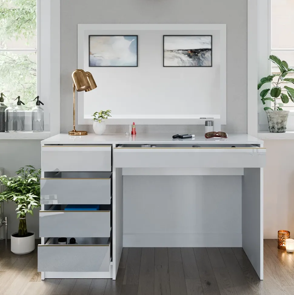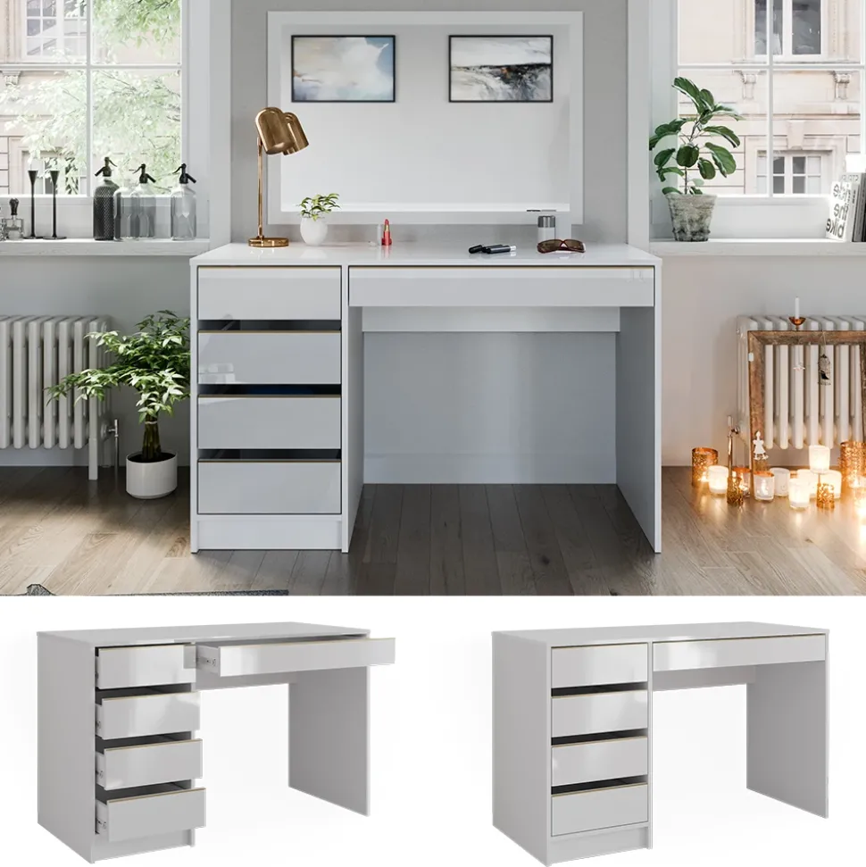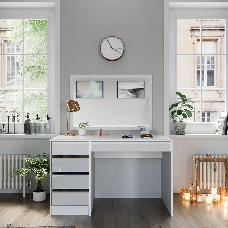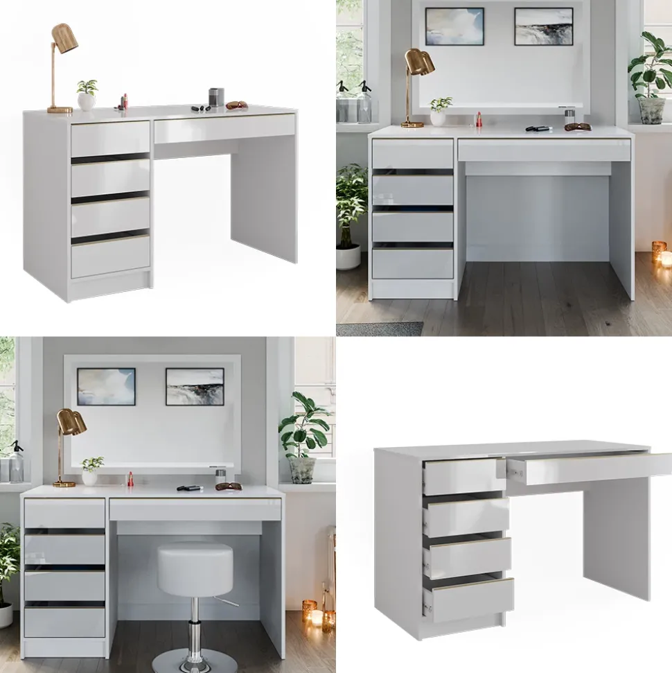 - Mit seinem zeitlosen Design fügt sich die Schminkkommode perfekt in Ihr Schlafzimmer ein. Der moderne Frisiertisch bietet reichlich Stauraum in den Schubladen für Ihr Make-Up und Styling-Bedarf.