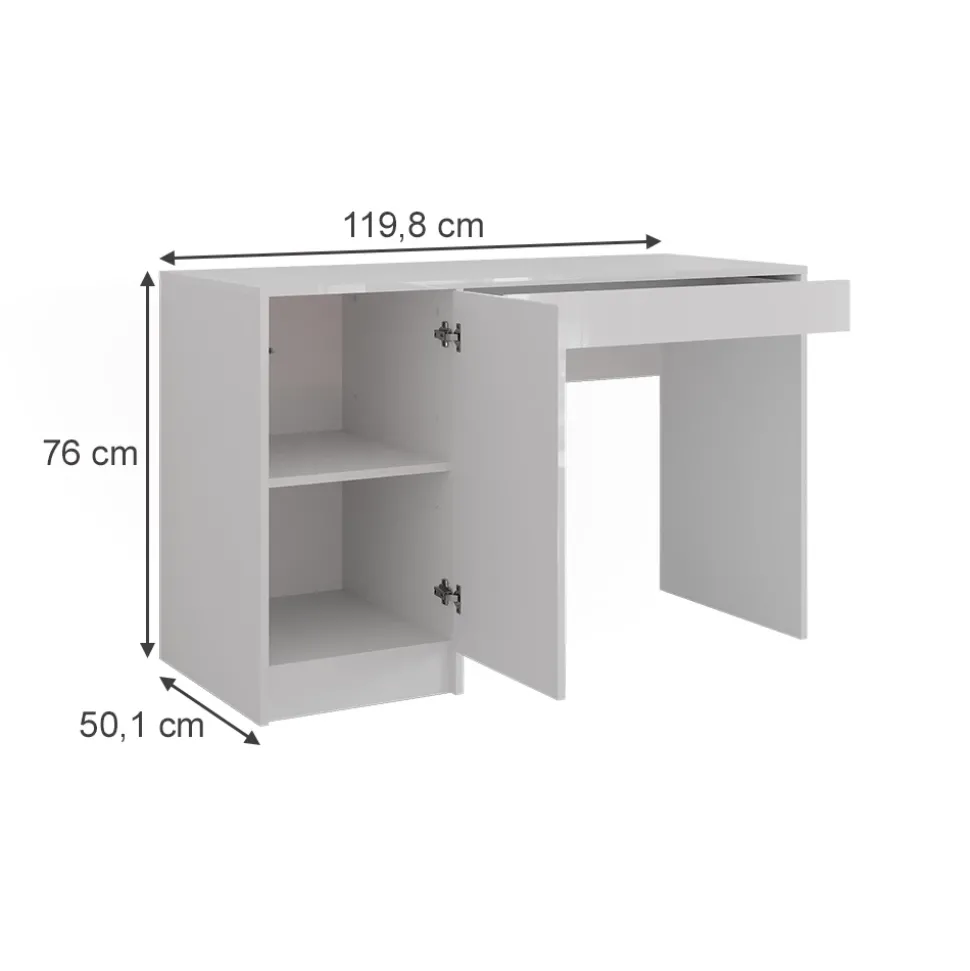 - MAßE: Der Frisiertisch hat eine Tiefe von 50,1 cm, eine Breite von 119,8 cm und eine Höhe von 76 cm.