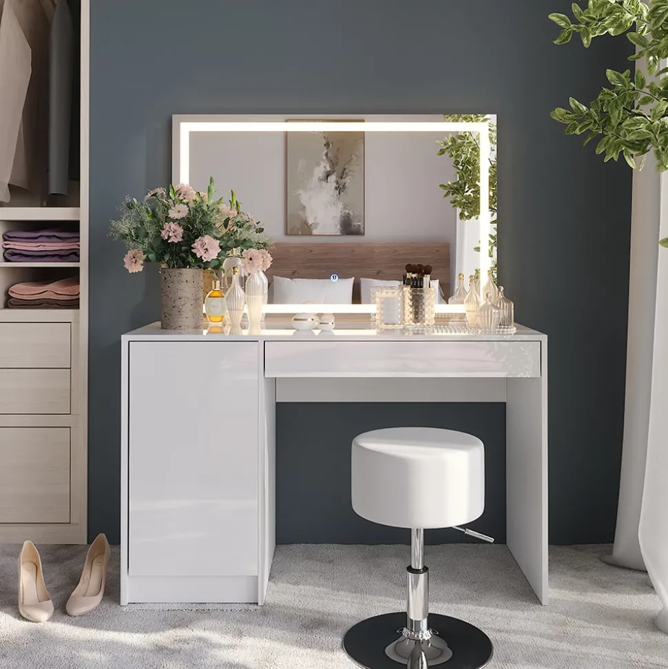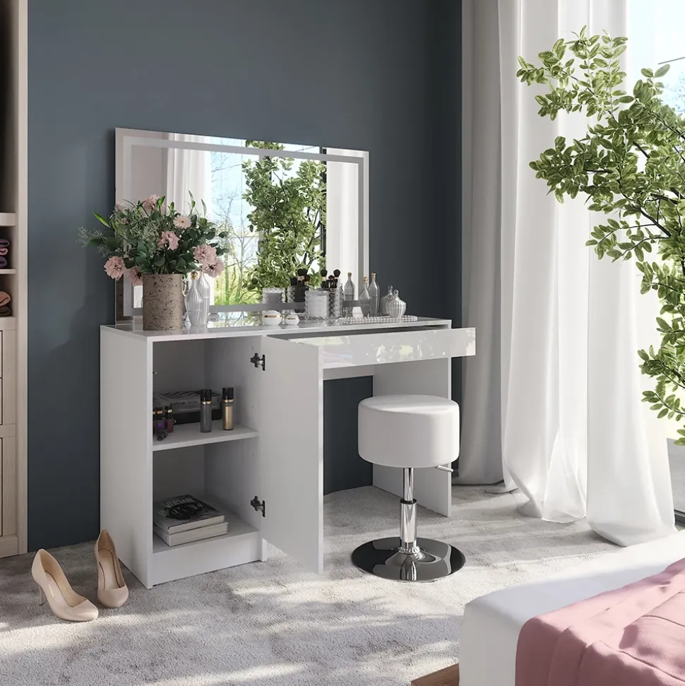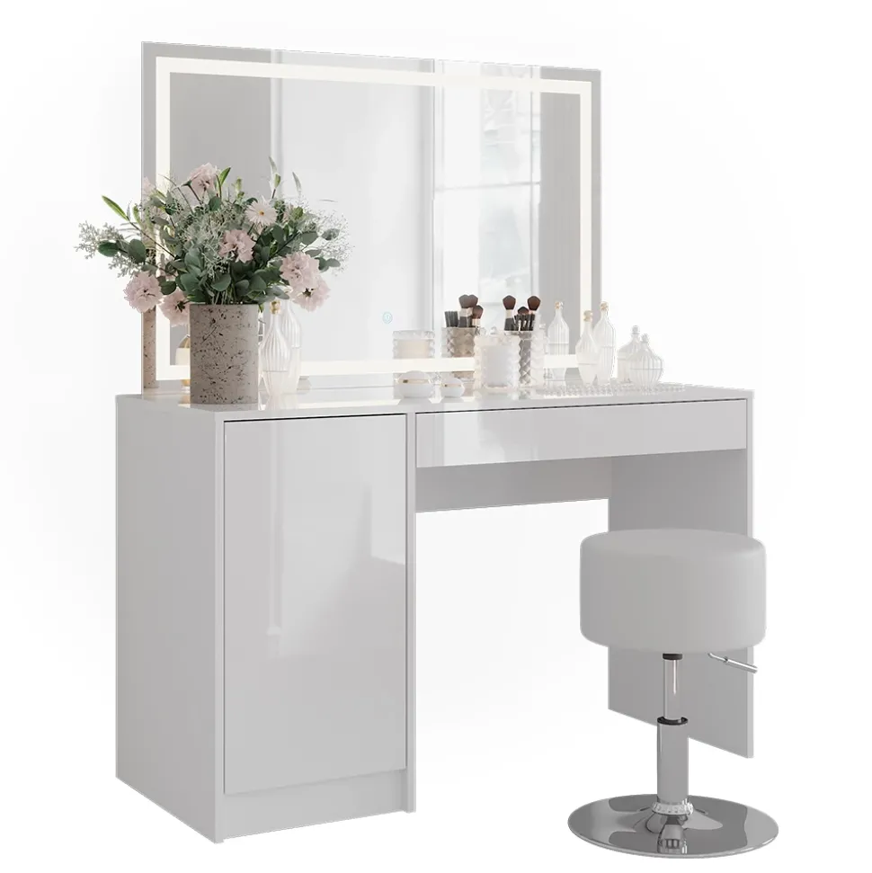 - Der Kosmetiktisch bietet dir einen perfekten LED-Spiegel und großzügigen Stauraum für dein Make-up, deine Accessoires und mehr – für ein stilvolles Beauty-Ritual.