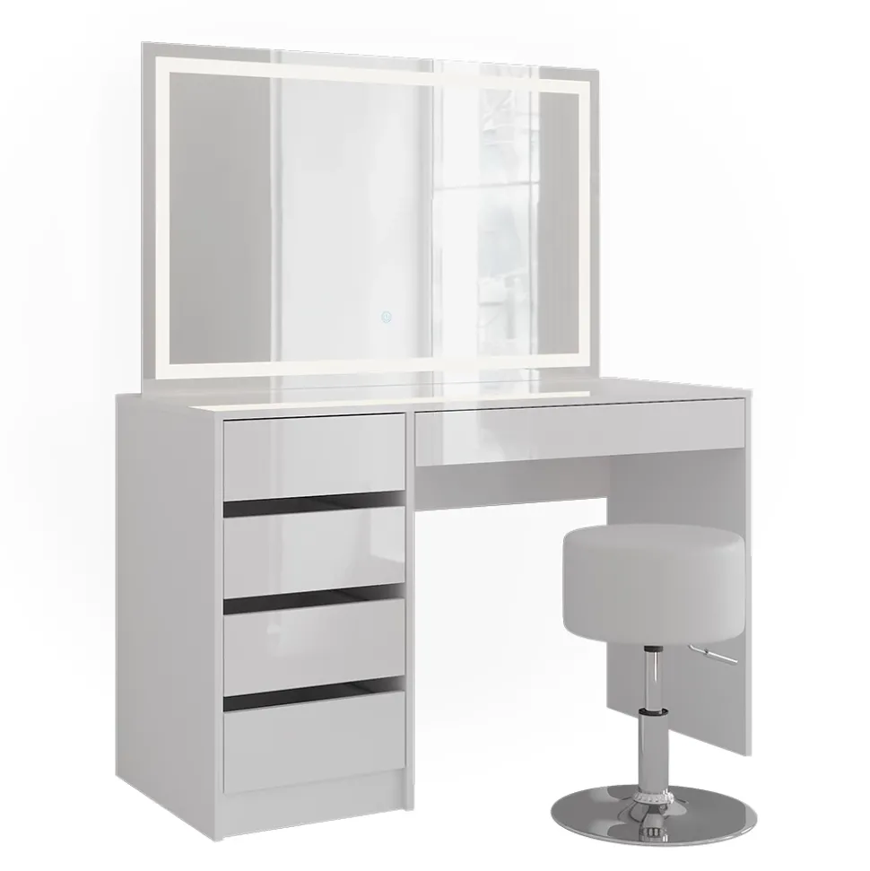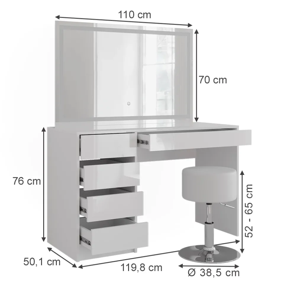 - Die Frisierkommode mit LED-Spiegel und Hocker ist eine gute Wahl für deine Wohnung. Das moderne Design und der elegante Look machen sie leicht zu bedienen und bringen Freude in deine tägliche Routine.