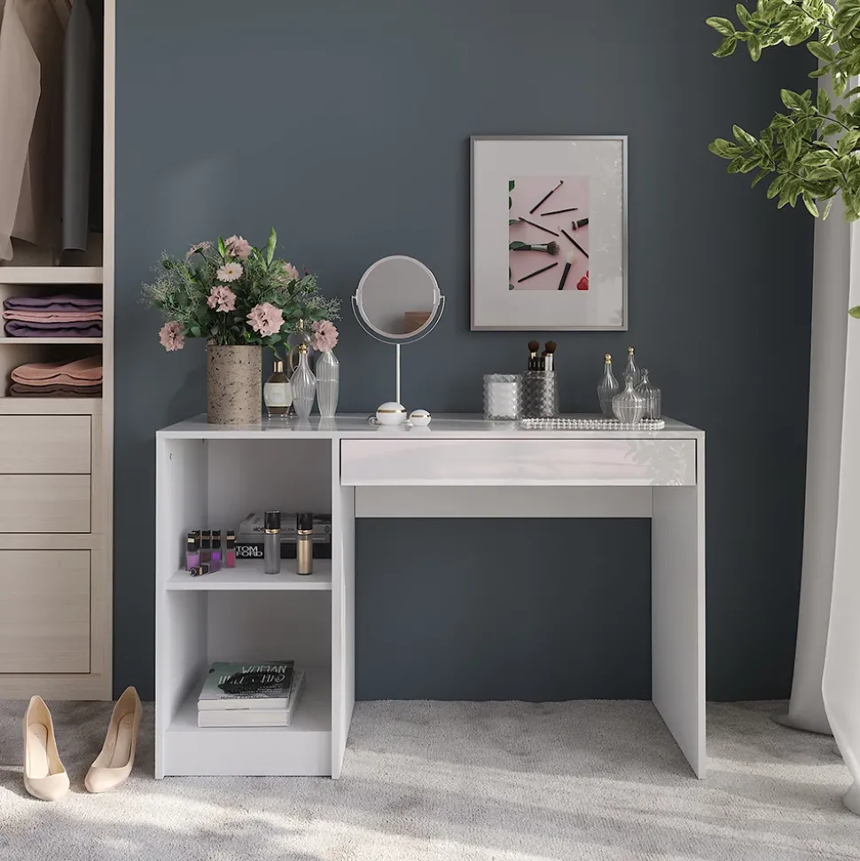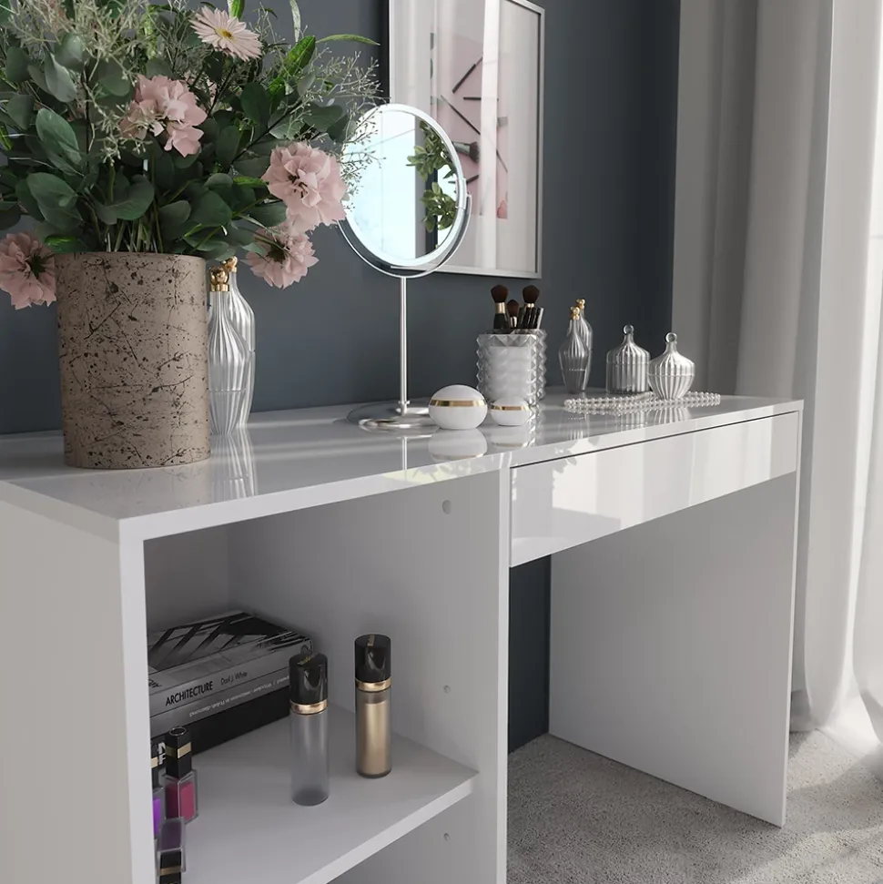 - Der Frisiertisch bietet genug Platz für all deine Beauty-Produkte und Accessoires. Ein Schminktisch mit viel Ablage, der offene Container sorgt für Ordnung & schnellen Zugriff.