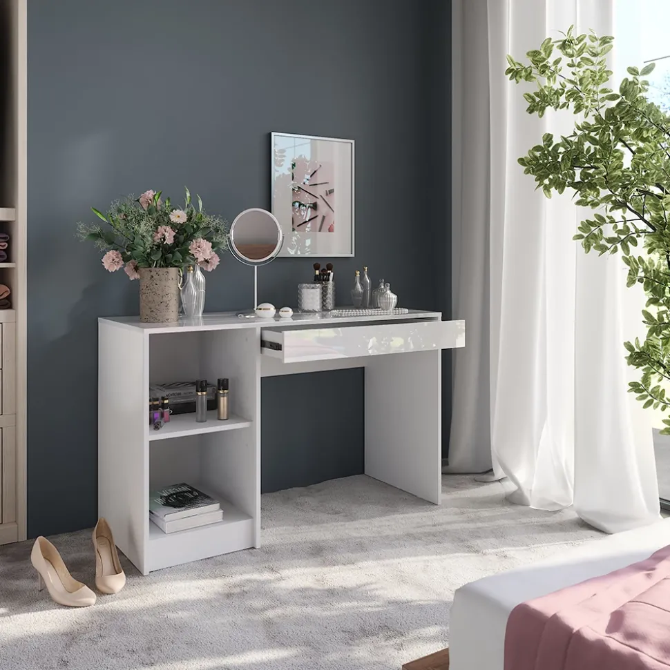 Der Schminktisch „Sherry“ vereint elegantes Design mit cleverer Funktionalität und wird im Handumdrehen zu deinem Lieblingsplatz. Ob modern, klassisch oder dezent – dank vielfältiger Kombinationsmöglichkeiten findest du genau die Variante, die wie für dich und dein Zuhause gemacht ist. „Sherry“ ist mehr als ein Möbelstück – er schenkt dir jeden Tag einen kleinen Wohlfühlmoment. Entdecke die Vielfalt und finde deinen persönlichen Traum-Frisiertisch, der Schönheit und Ordnung mit einem Hauch Luxus vereint.