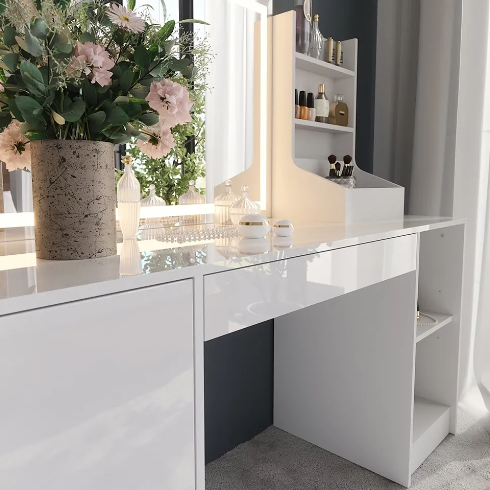 - Die Frisierkommode mit Beleuchtung ist eine gute Entscheidung für deine Wohnung. Ihr stilvoller Look und durchdachtes Design machen dein Styling angenehm und unterhaltsam.