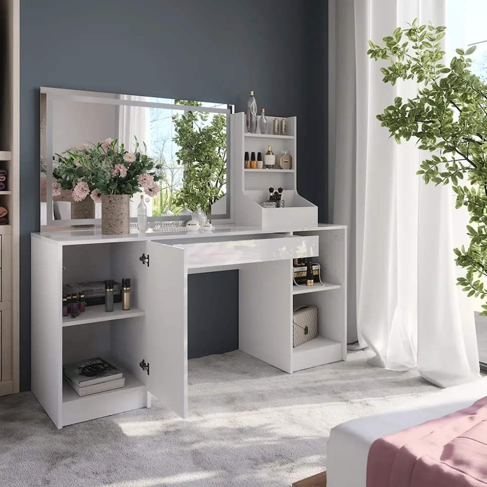 Der Schminktisch „Sherry“ vereint elegantes Design mit cleverer Funktionalität und wird im Handumdrehen zu deinem Lieblingsplatz. Ob modern, klassisch oder dezent – dank vielfältiger Kombinationsmöglichkeiten findest du genau die Variante, die wie für dich und dein Zuhause gemacht ist. „Sherry“ ist mehr als ein Möbelstück – er schenkt dir jeden Tag einen kleinen Wohlfühlmoment. Entdecke die Vielfalt und finde deinen persönlichen Traum-Frisiertisch, der Schönheit und Ordnung mit einem Hauch Luxus vereint.