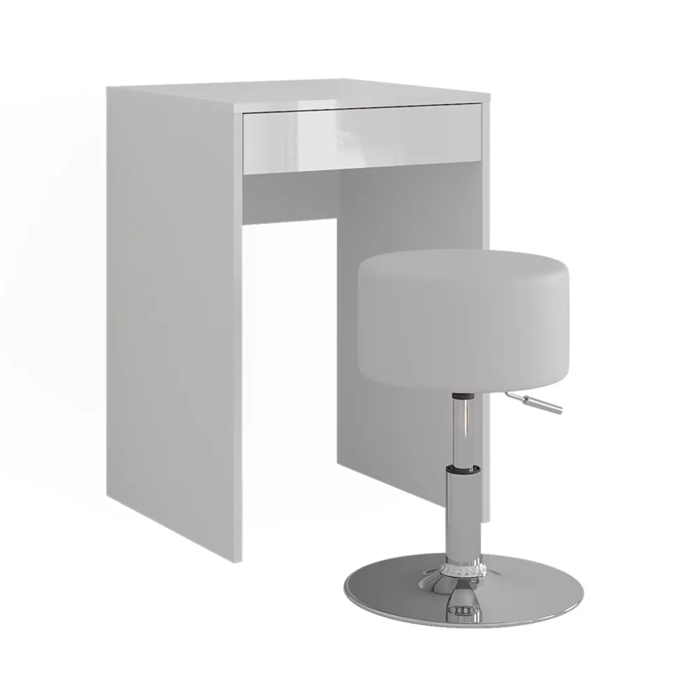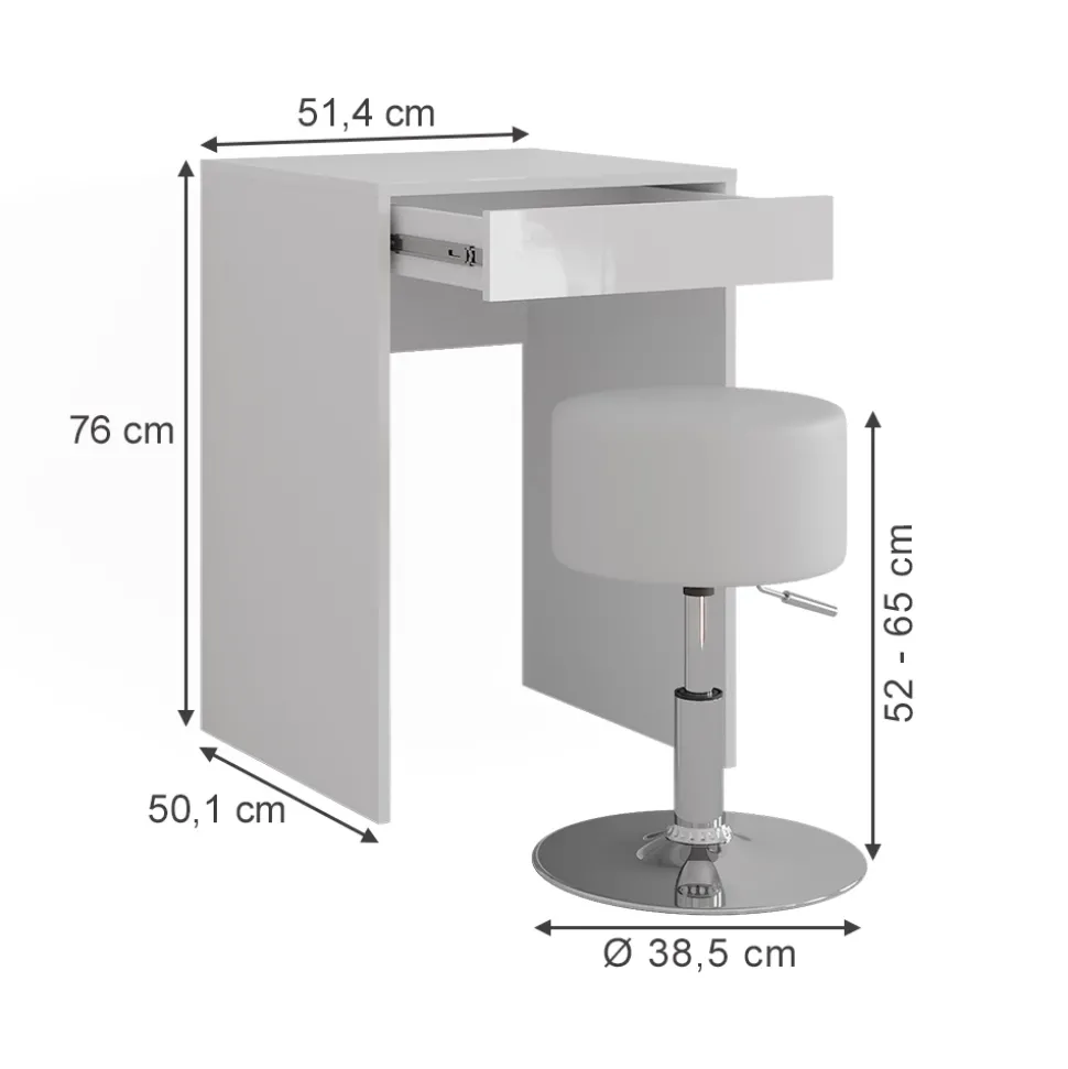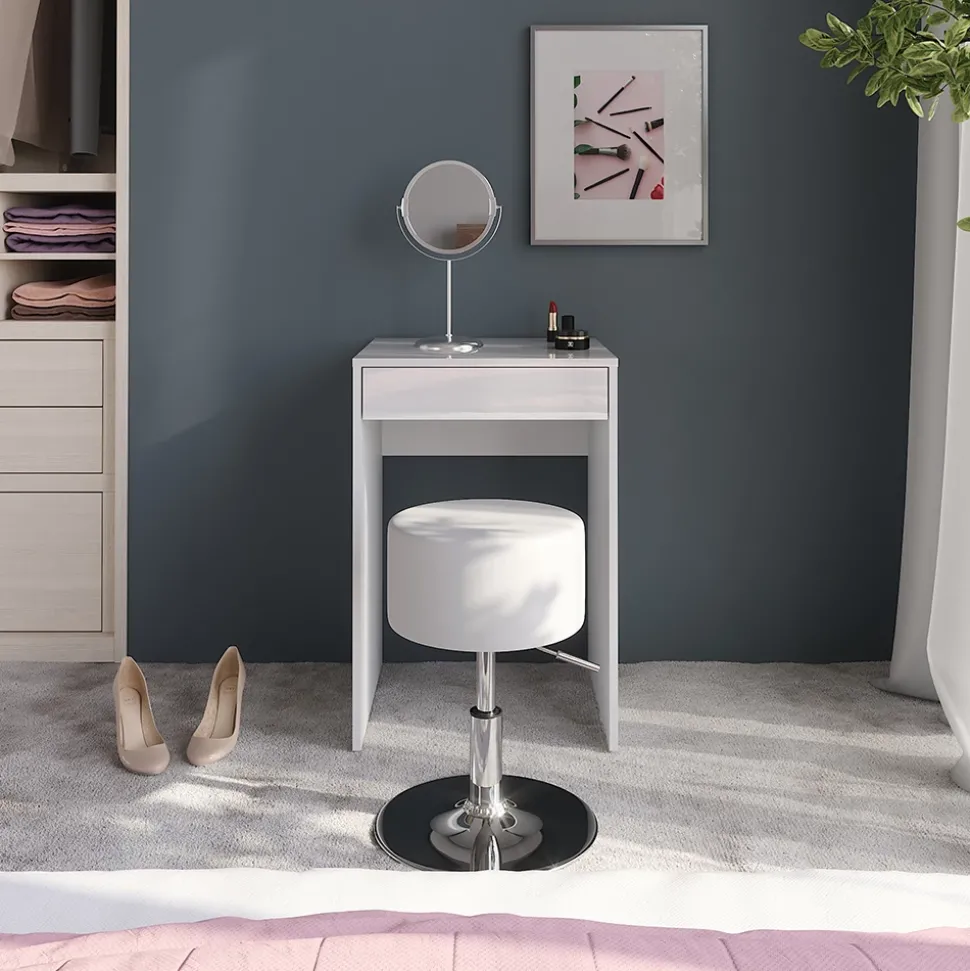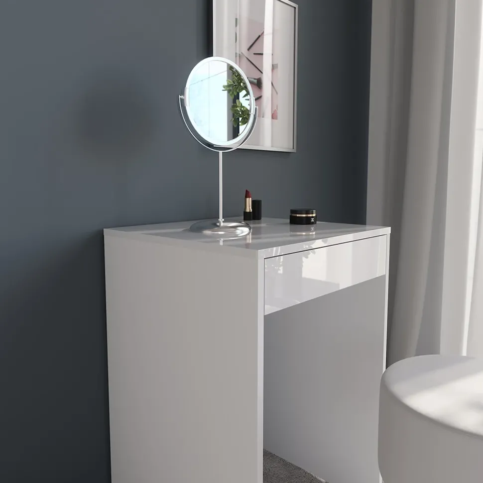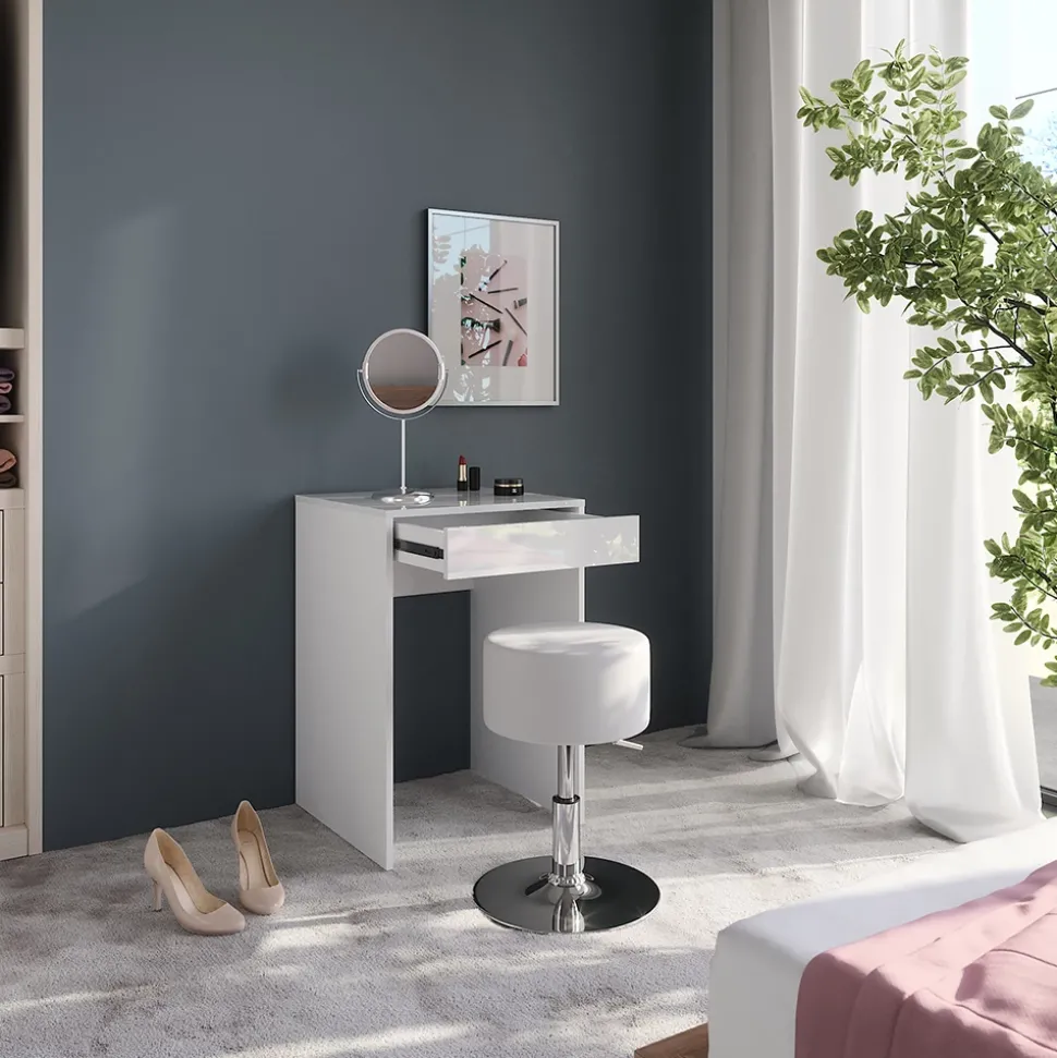 - Kompakter Schminktisch mit eleganter Schublade und modernem Design – ideal für kleine Räume und ein stilvolles Make-up-Erlebnis.