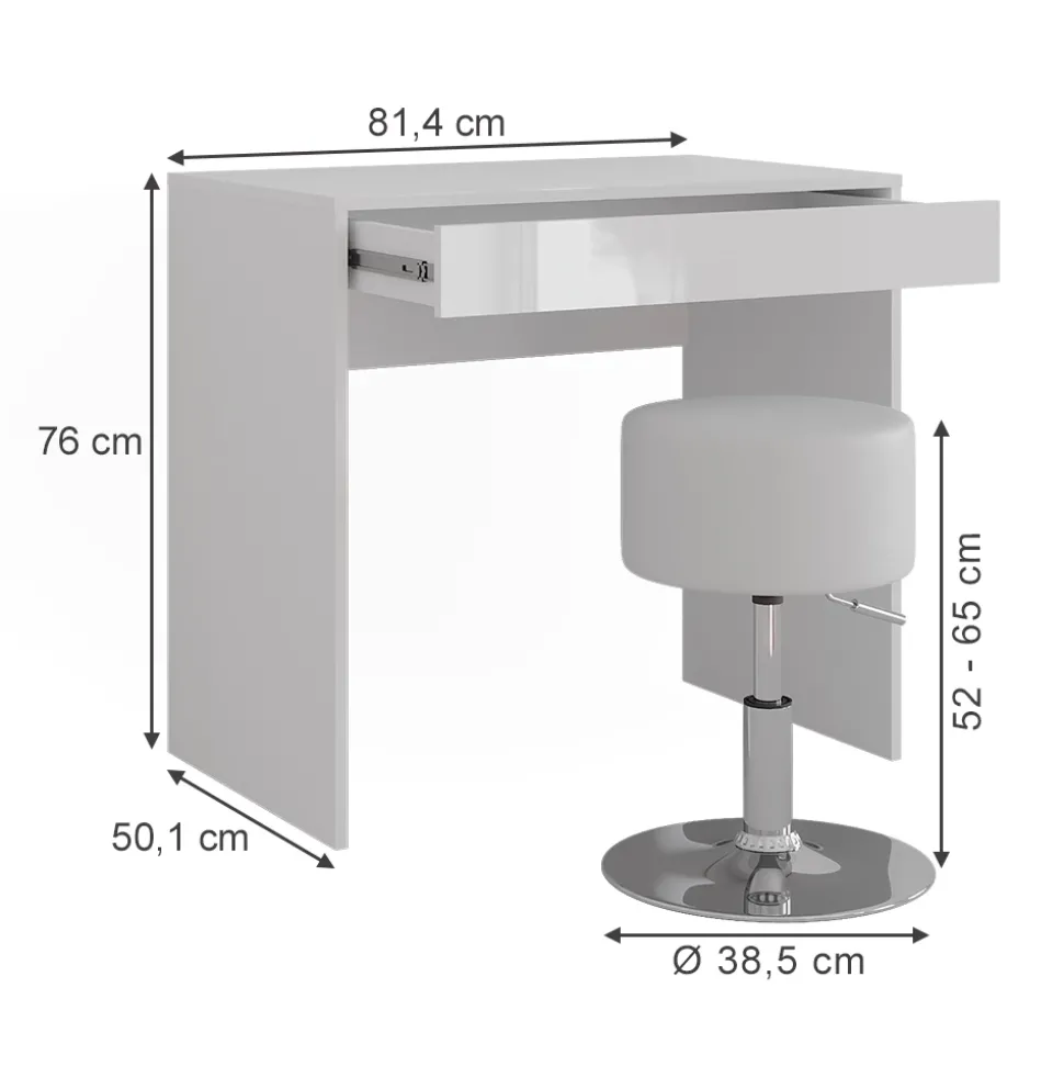 Schminktisch: 81.4 x 76 x 50.1 cm (BxHxT)